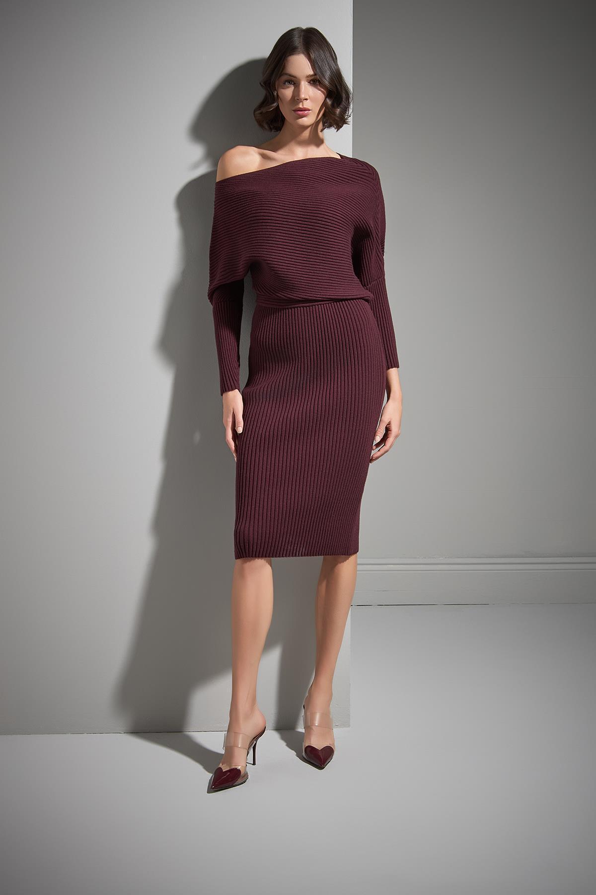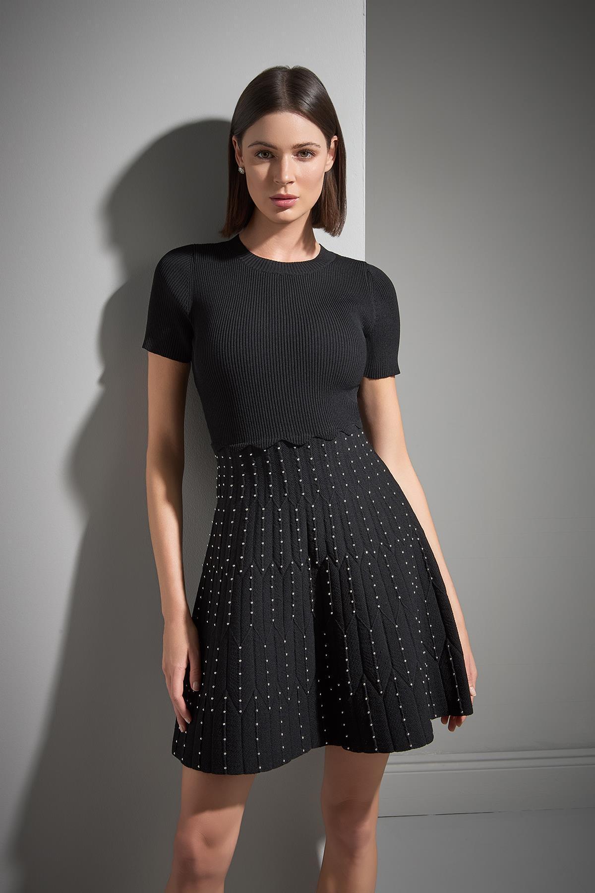 Bisiklet Yaka Trok Baskılı Siyah Triko Elbise Bisiklet Yaka Trok Baskılı Siyah Triko Elbise 2526W047800 L