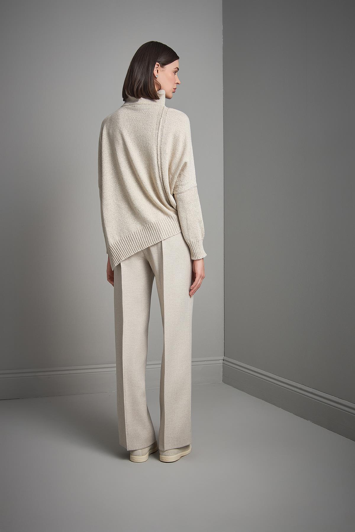 Dik Yaka Asimetrik Bej Triko Kazak Dik Yaka Asimetrik Bej Triko Kazak 2526W069710 L