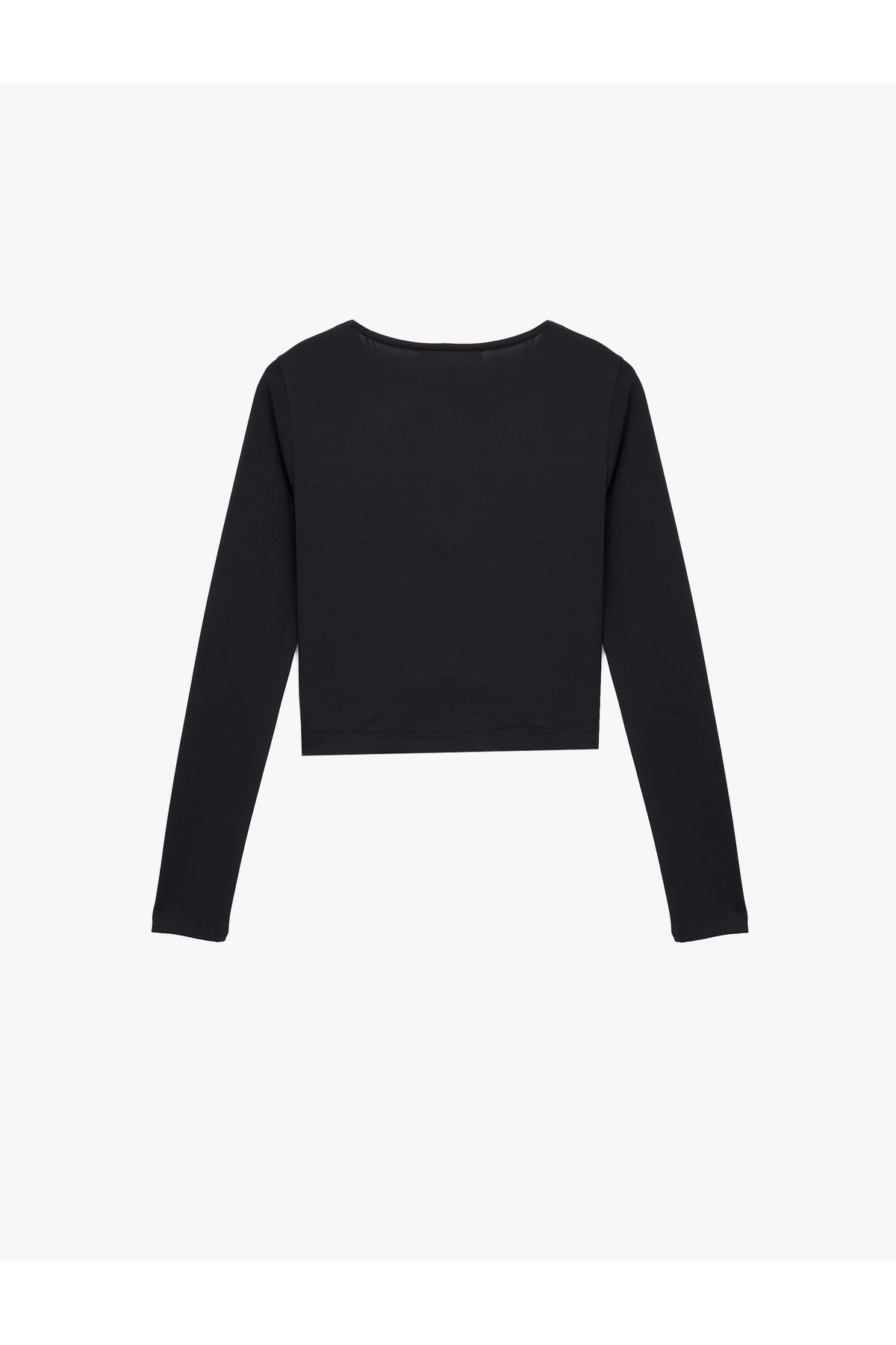 Slim Fit Uzun Kollu Metal Aksesuarlı Degaje Yaka Tişört Slim Fit Uzun Kollu Metal Aksesuarlı Degaje Yaka Tişört 6WAL10531IK XL