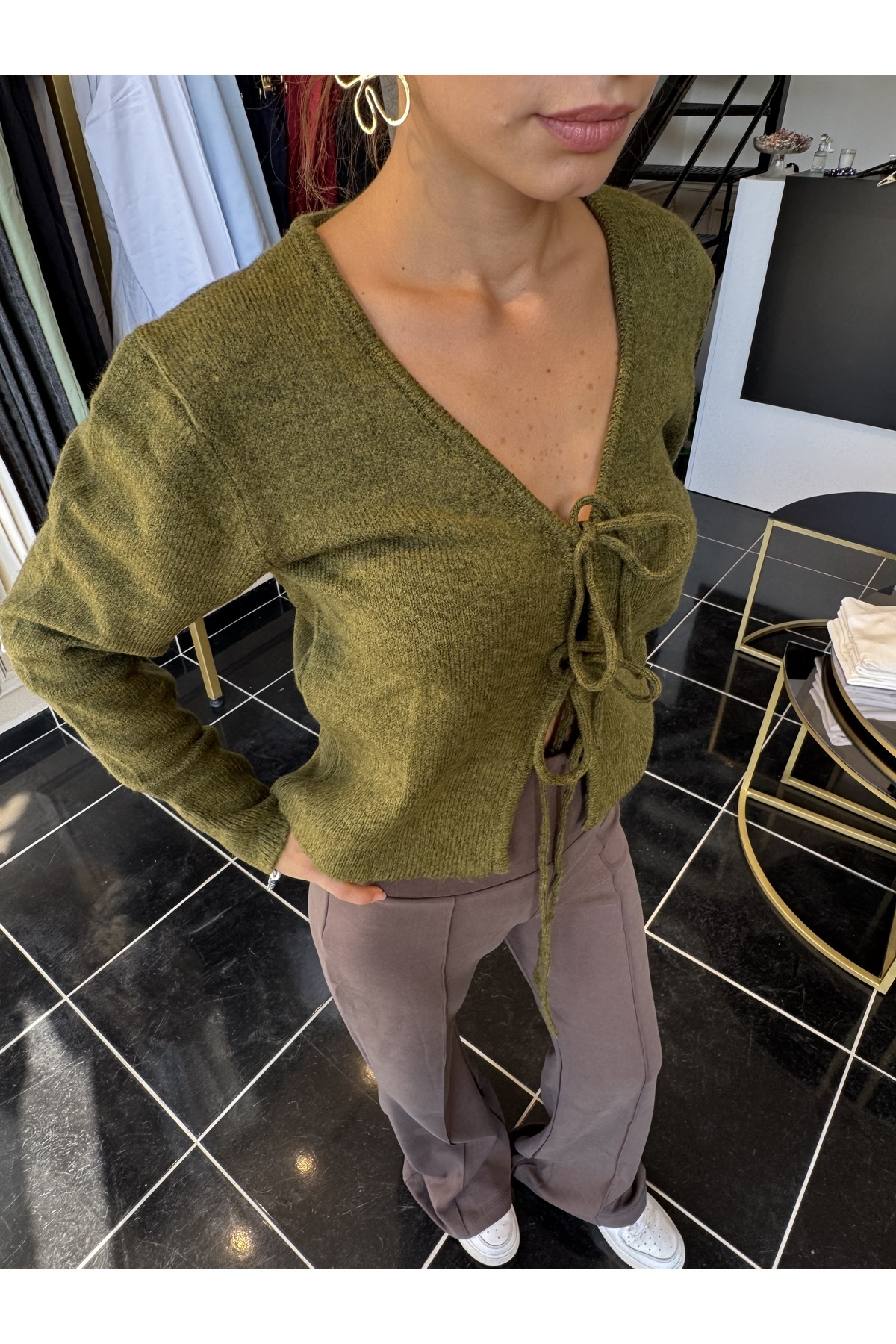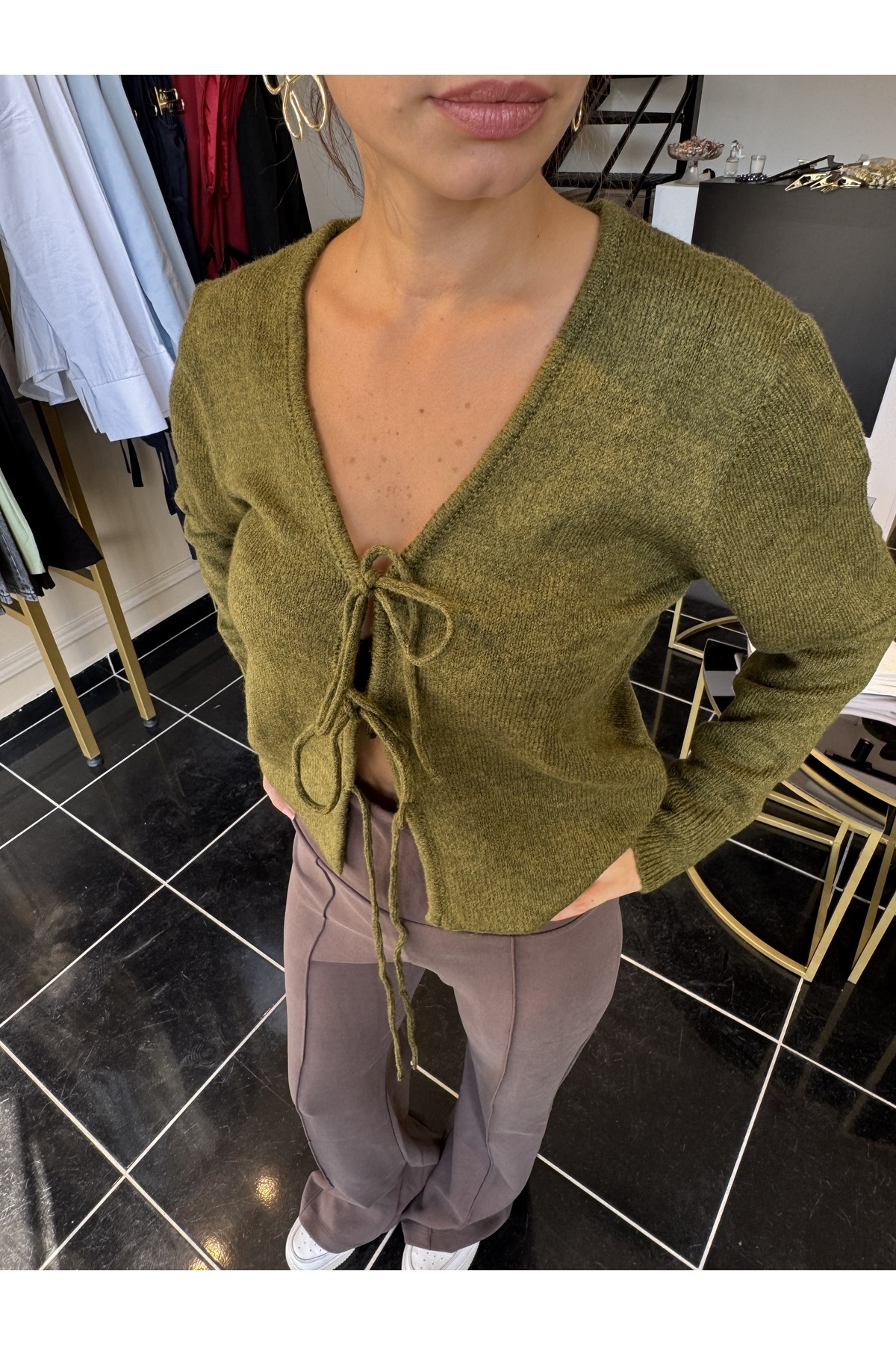 Önü Bağlamalı V Yaka Triko Hırka Önü Bağlamalı V Yaka Triko Hırka H-01 Standart