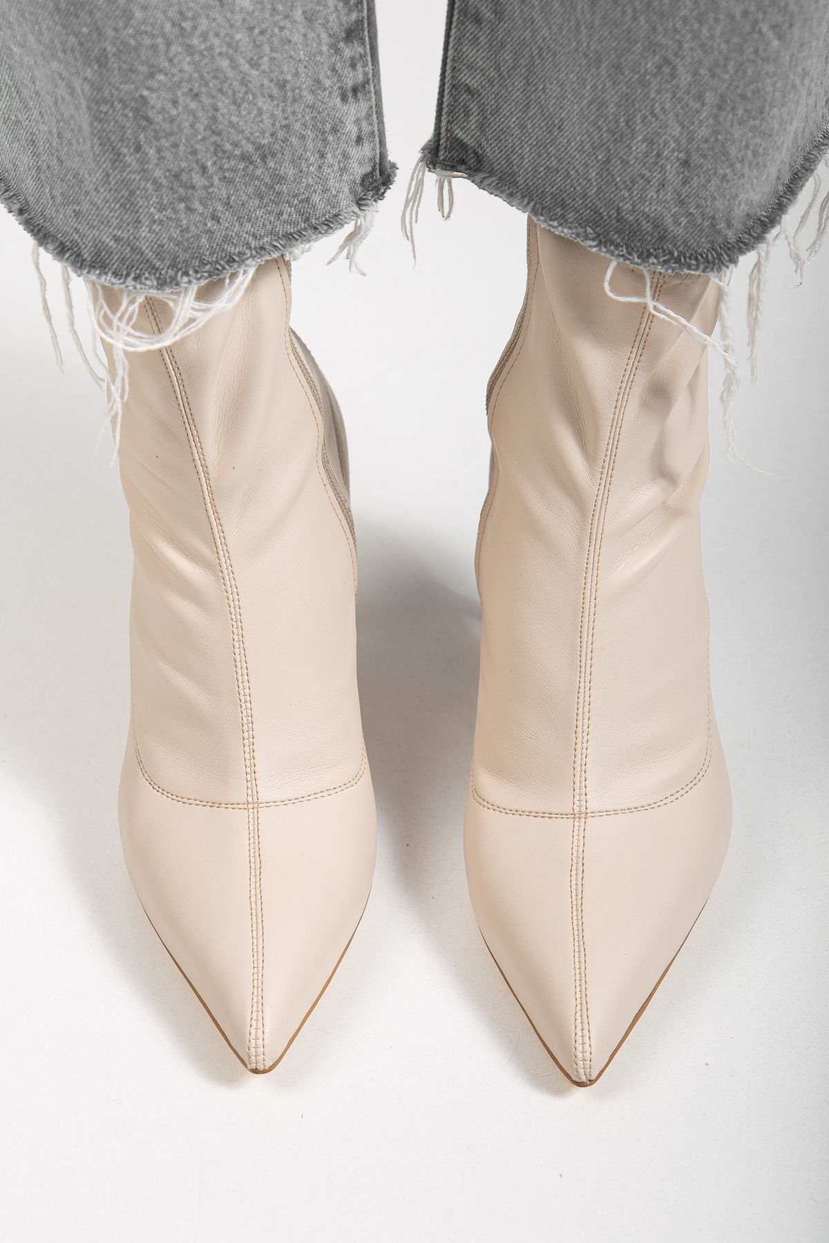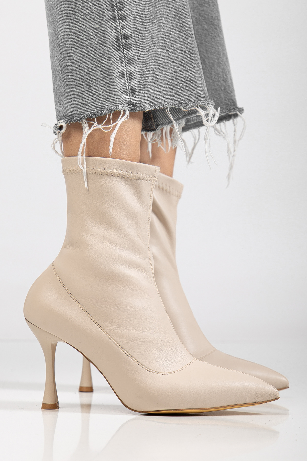 Kadın Bej Streç Cilt Yandan Fermuarlı Sivri Burun İnce Topuklu Bot Kadın Bej Streç Cilt Yandan Fermuarlı Sivri Burun İnce Topuklu Bot SVR-300 40