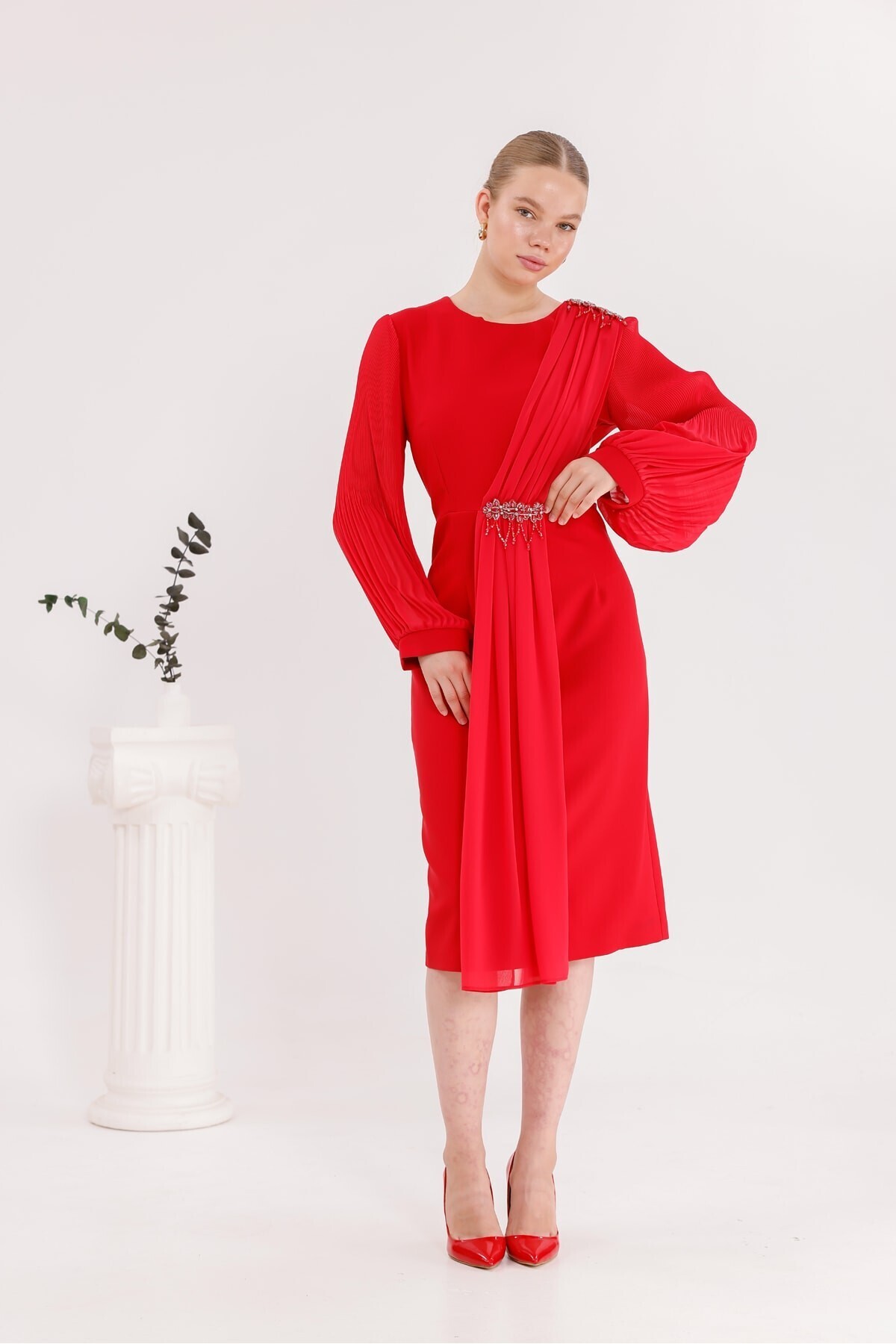 Femina Şifon Detaylı Aksesuarlı Elbise 9001 Femina Şifon Detaylı Aksesuarlı Elbise 9001 48