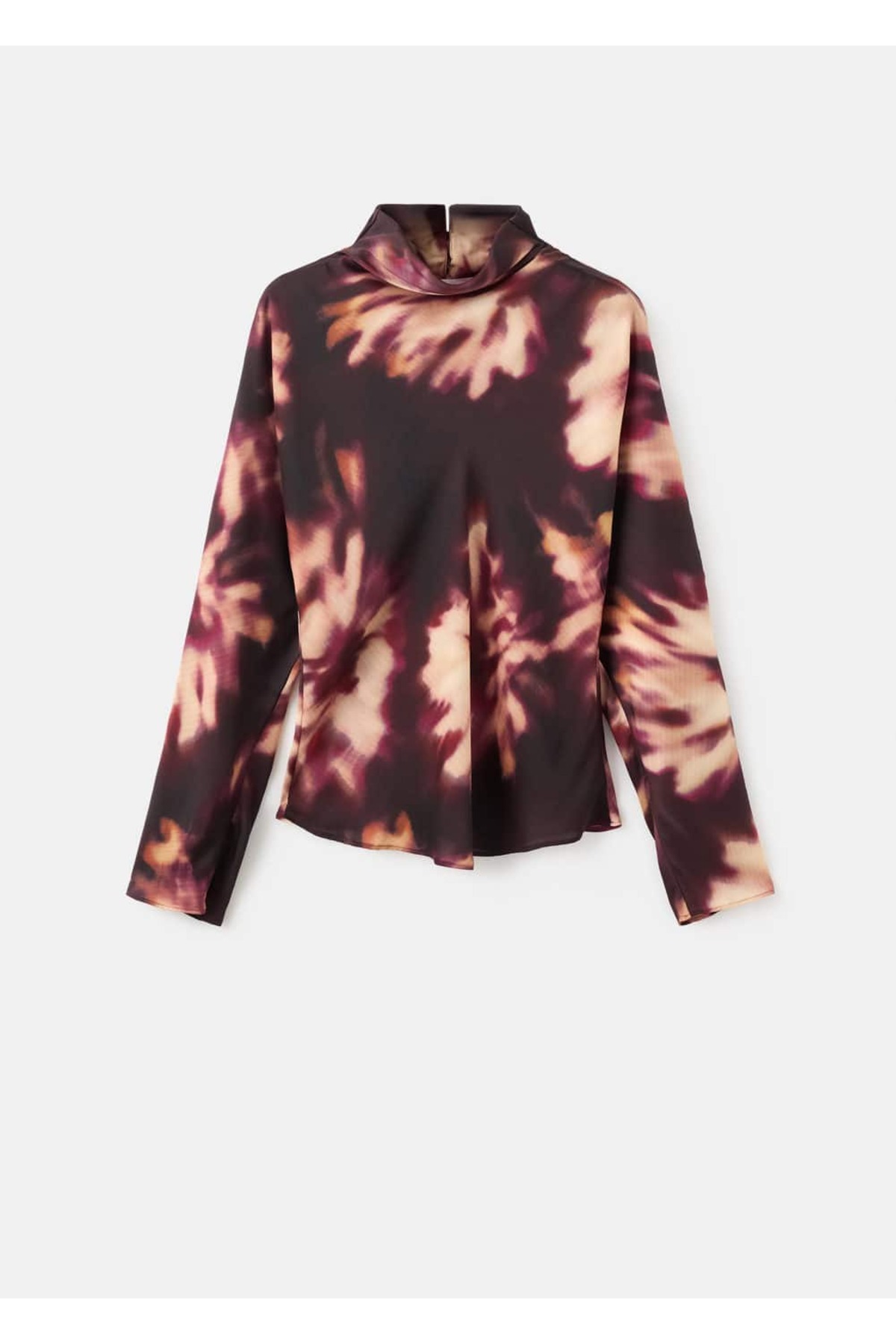 Yüksek yakalı batik desenli bluz Yüksek yakalı batik desenli bluz 17067816 L