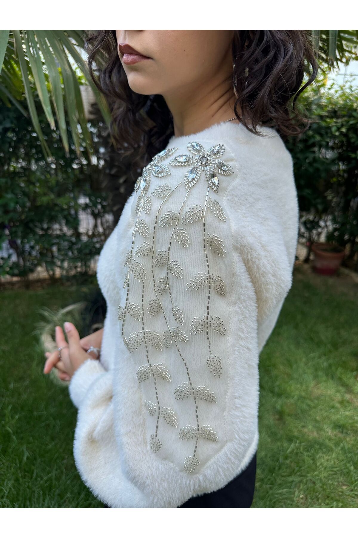 kolları tül gülden oluşan peluş kazak kadın/kız kolları tül gülden oluşan peluş kazak kadın/kız 8937 Standart