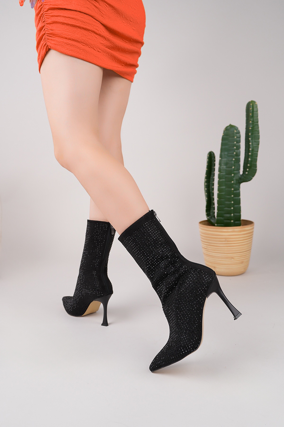 Parlak Taş Detaylı Topuklu Kadın Çizme Y10 Parlak Taş Detaylı Topuklu Kadın Çizme Y10 40