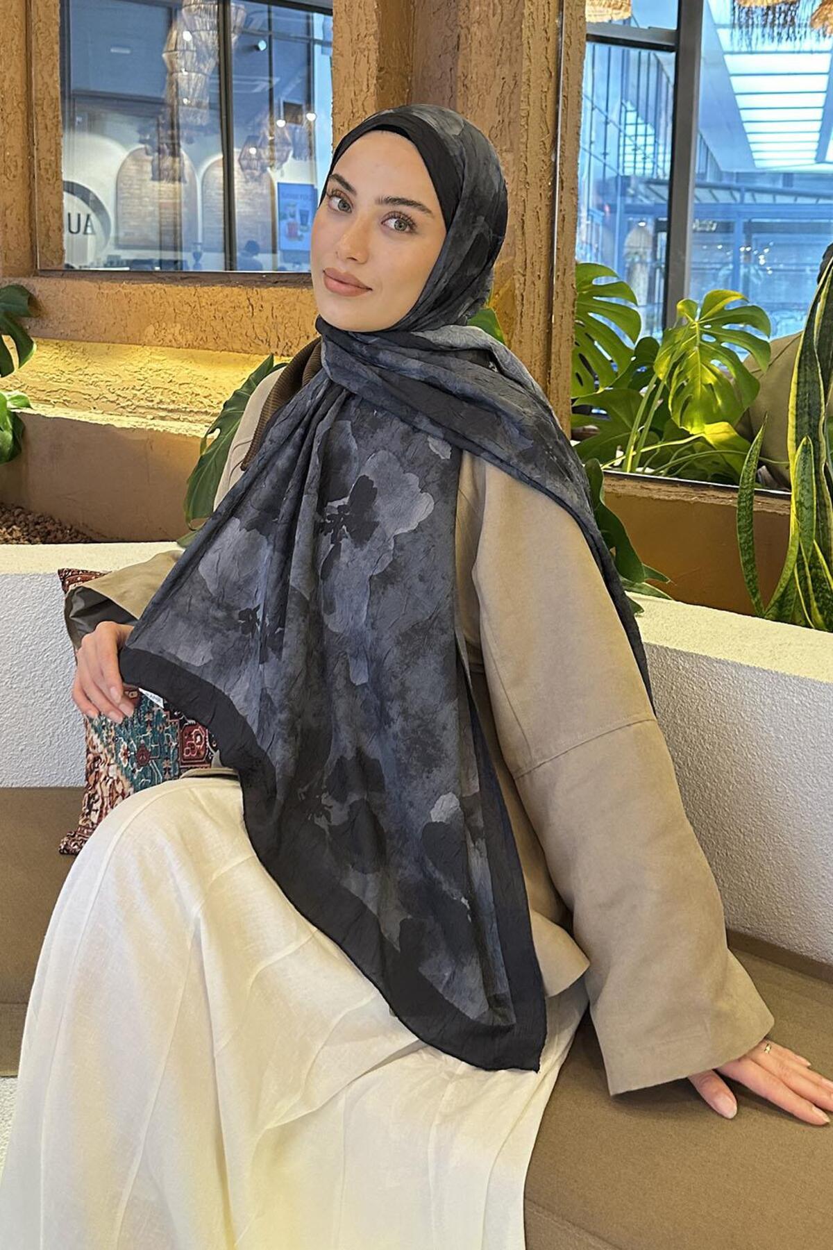 Batik Çiçek Desen Bambu Şal Siyah Batik Çiçek Desen Bambu Şal Siyah 20169 تک سایز