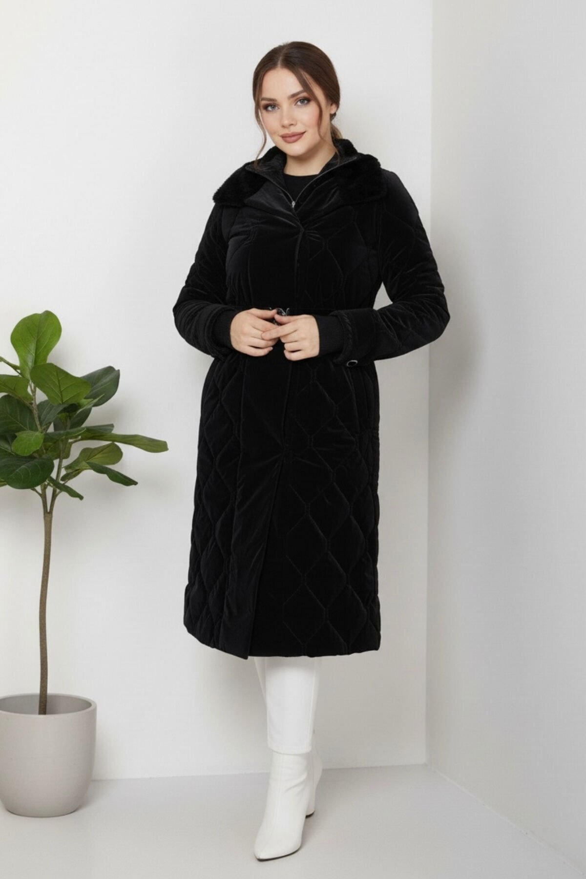 Kadın Yeni Sezon Kemerli Novam Kumaş Mont Taş KS2552 Kadın Yeni Sezon Kemerli Novam Kumaş Mont Taş KS2552 42