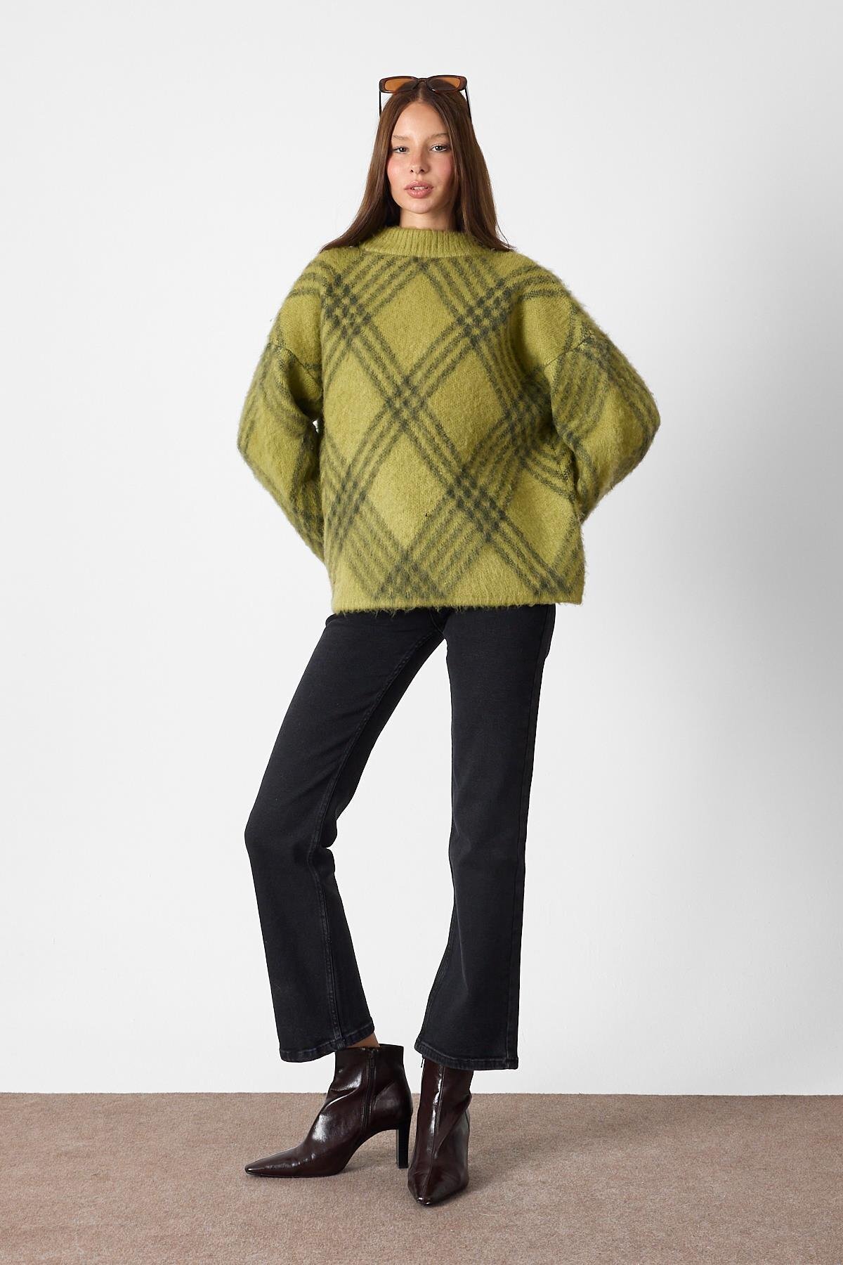 Yeşil Ekoseli Oversize Triko Kazak Yeşil Ekoseli Oversize Triko Kazak SW24K5306 M/L