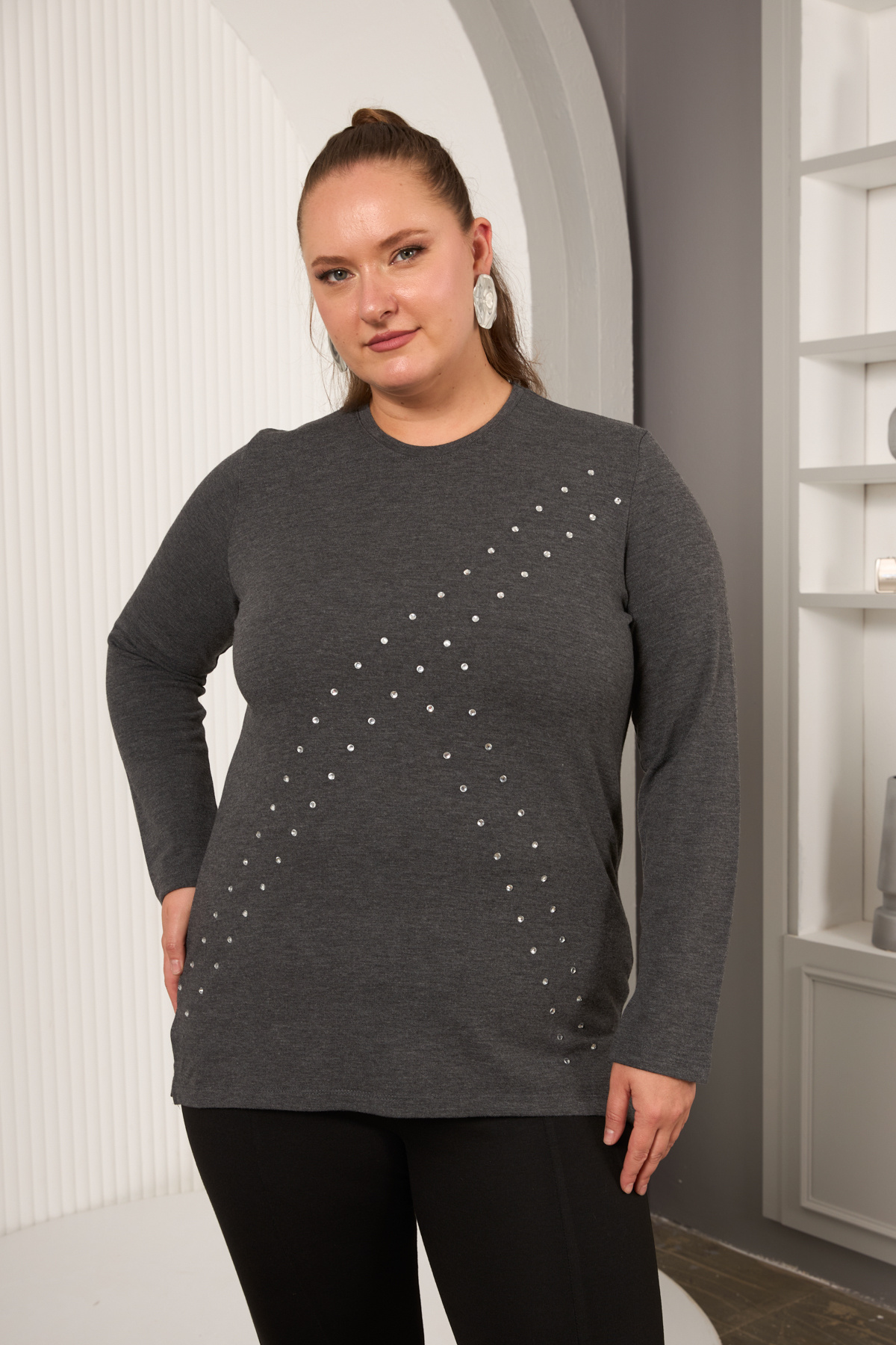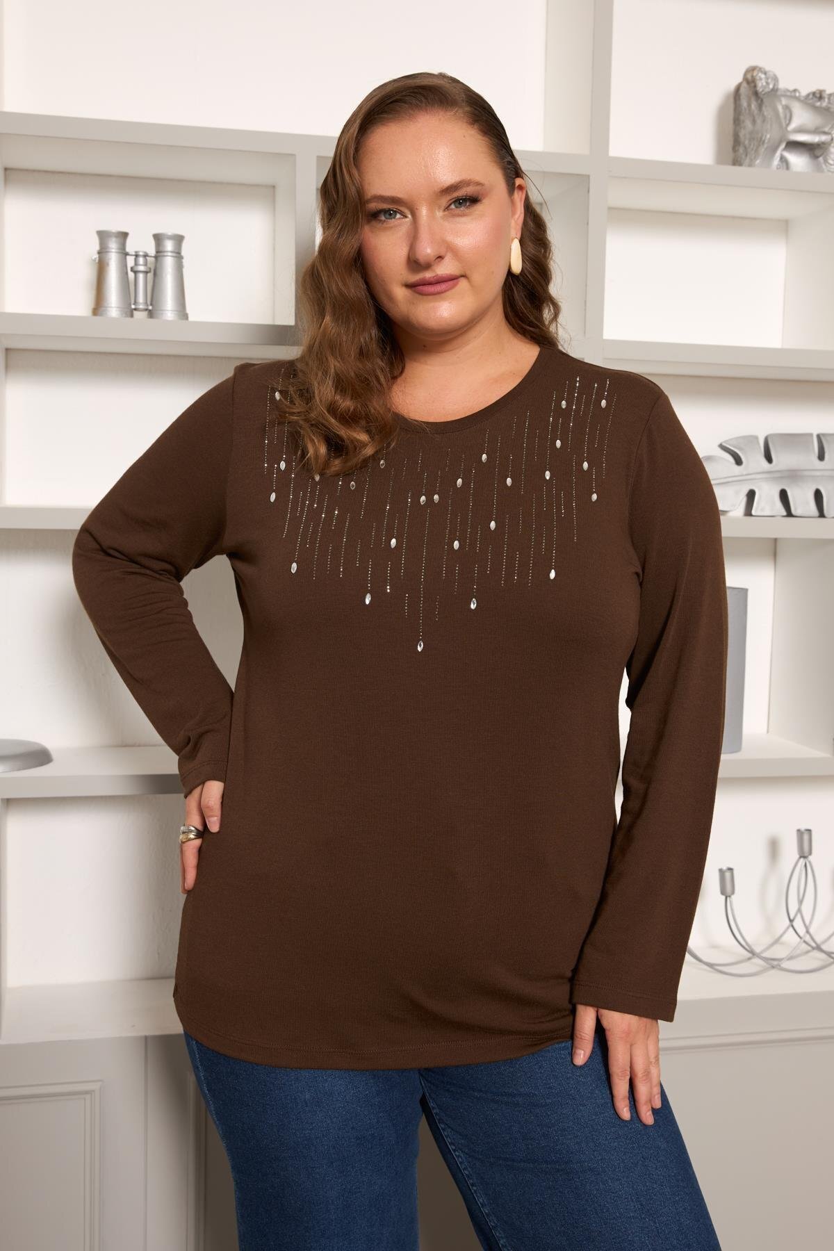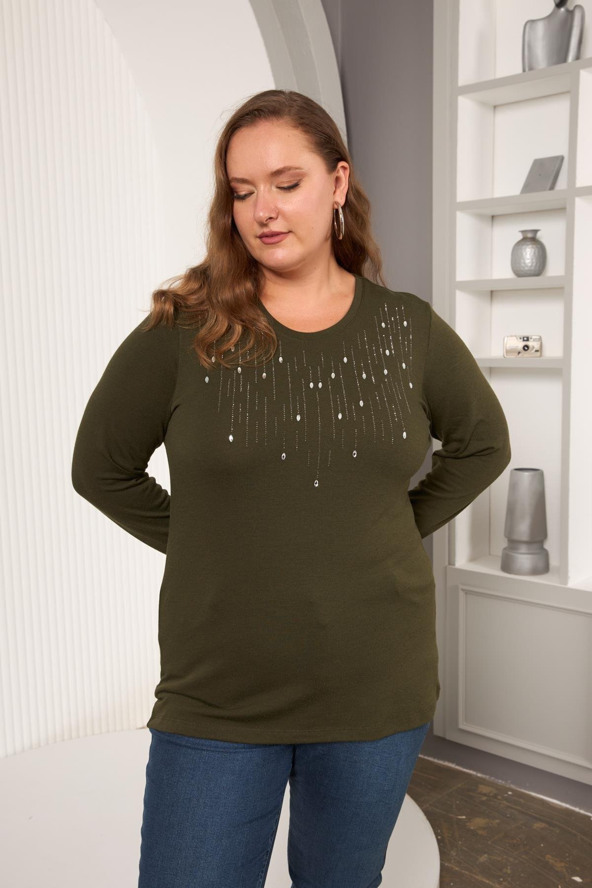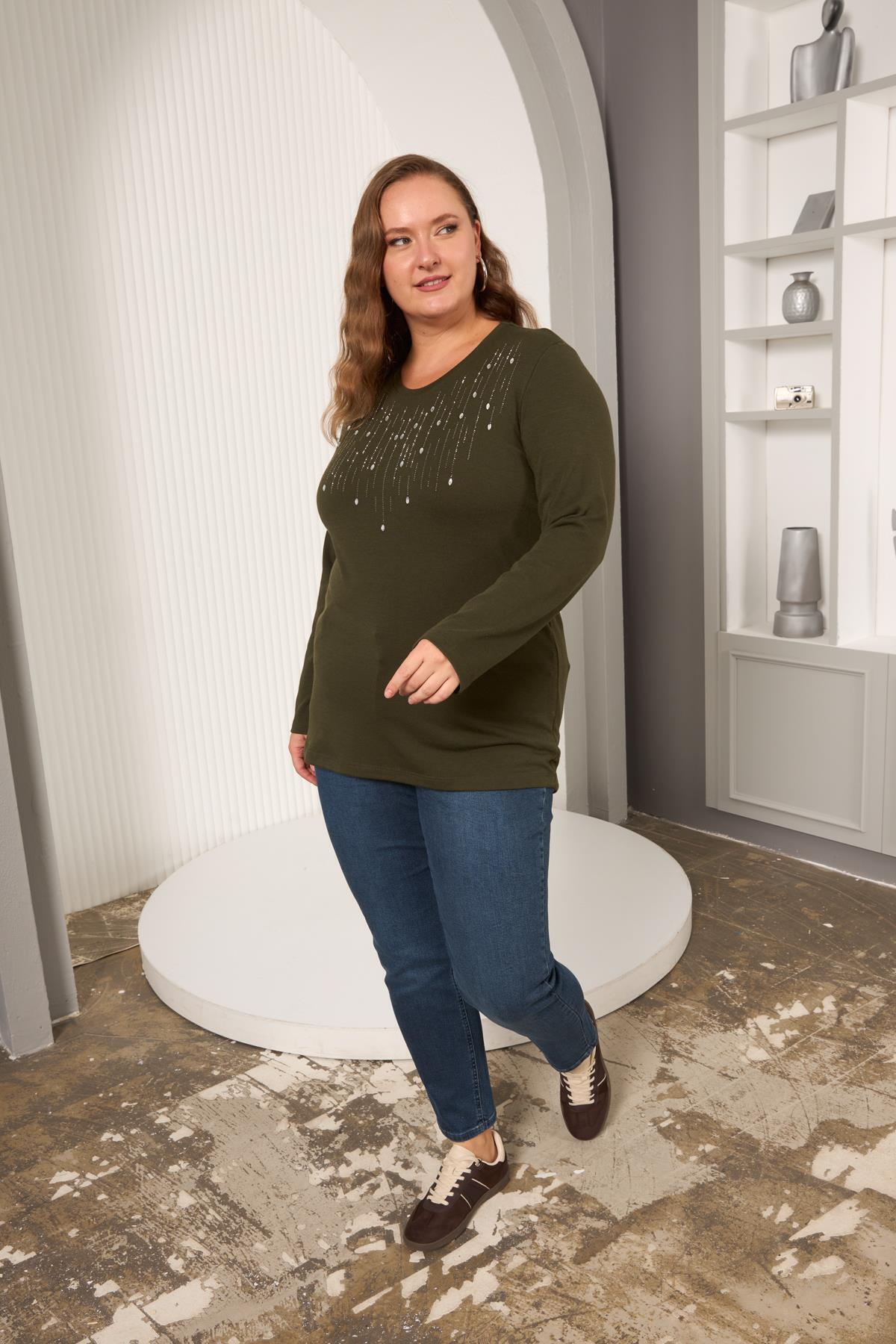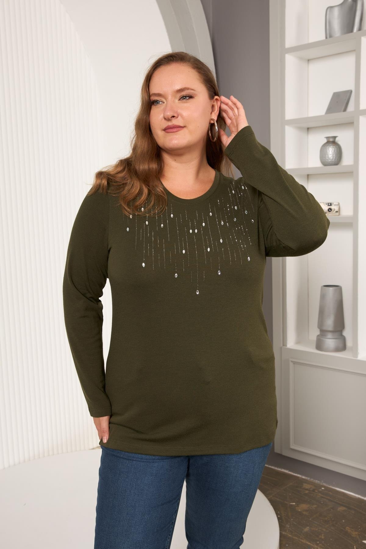 Büyük Beden Önü Taş Detay Bluz Haki Büyük Beden Önü Taş Detay Bluz Haki o6753 50