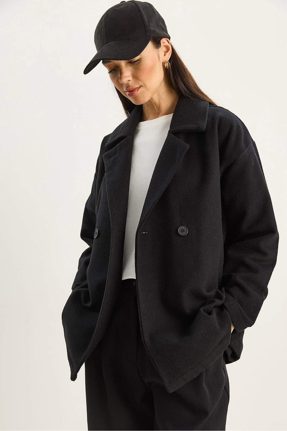 Siyah Kruvaze Yaka Çift Düğmeli Kaşe Kadın Ceket 8069A Siyah Kruvaze Yaka Çift Düğmeli Kaşe Kadın Ceket 8069A 26K1123DIS011 42