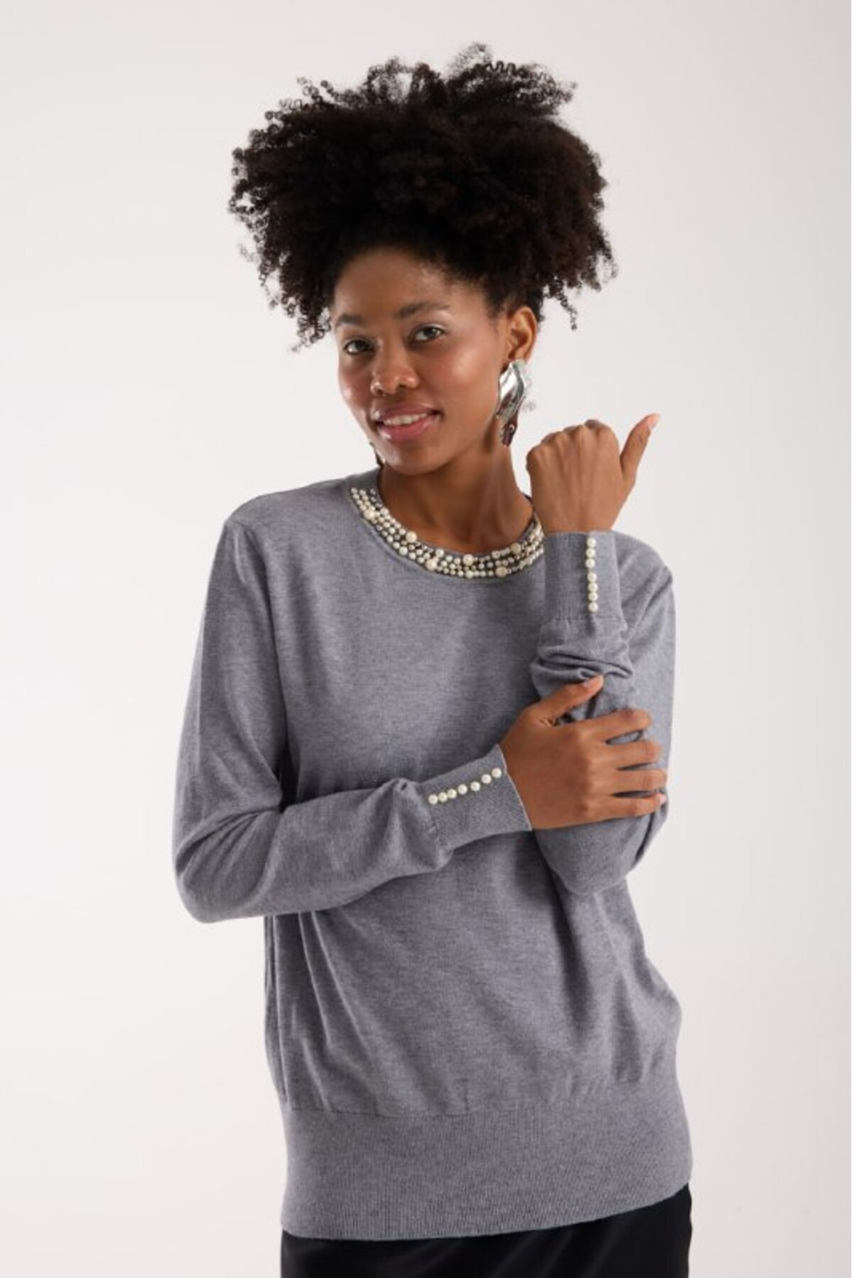 Kadın Yaka ve Manşetleri İnci Detaylı Bisiklet Yaka Kazak PUDRA 31189 Kadın Yaka ve Manşetleri İnci Detaylı Bisiklet Yaka Kazak PUDRA 31189 P12776S5981 Standart
