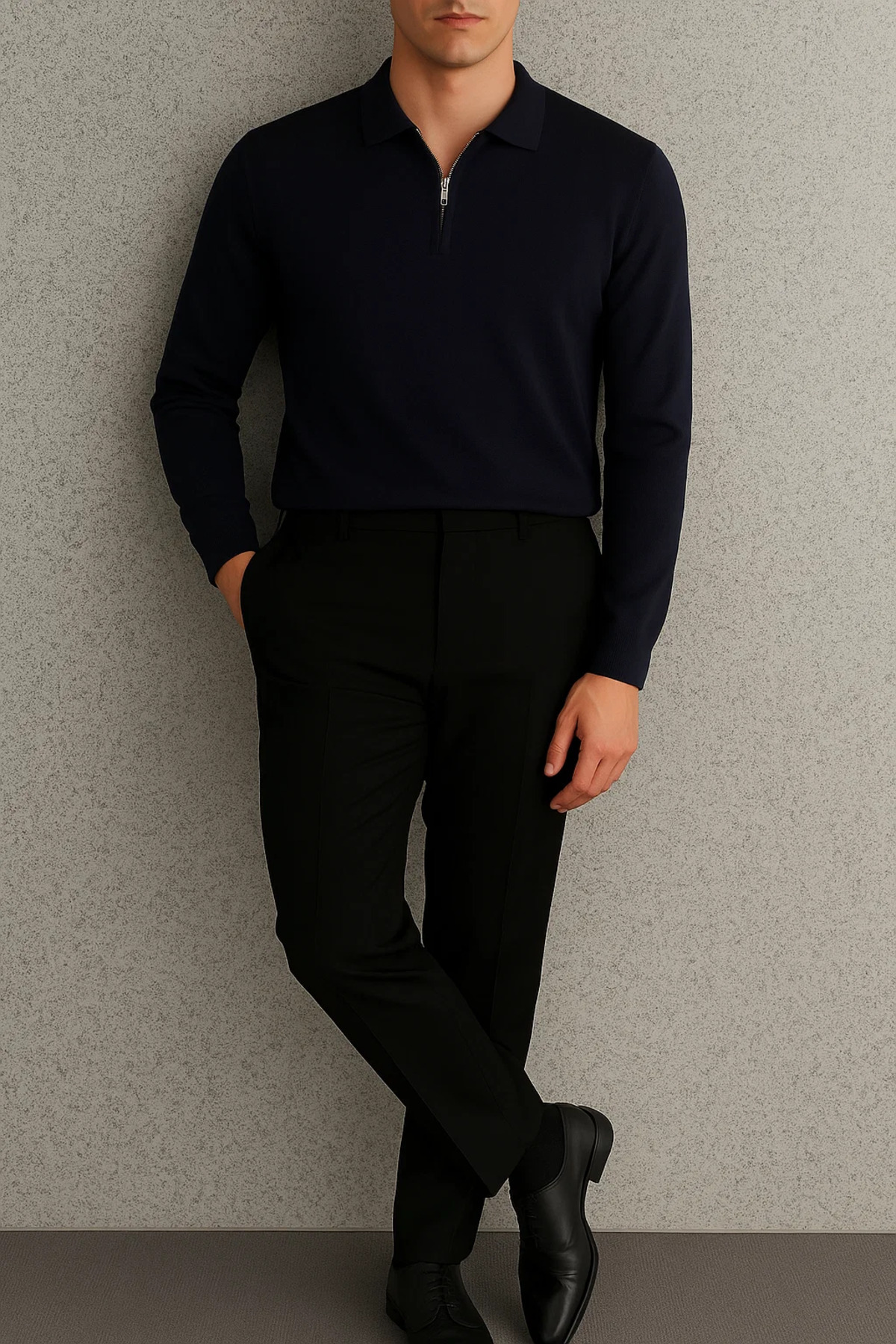 Erkek Uzun Kollu Yarım Fermuarlı Lacivert Sweatshirt Erkek Uzun Kollu Yarım Fermuarlı Lacivert Sweatshirt Ayna-4451-2 2XL