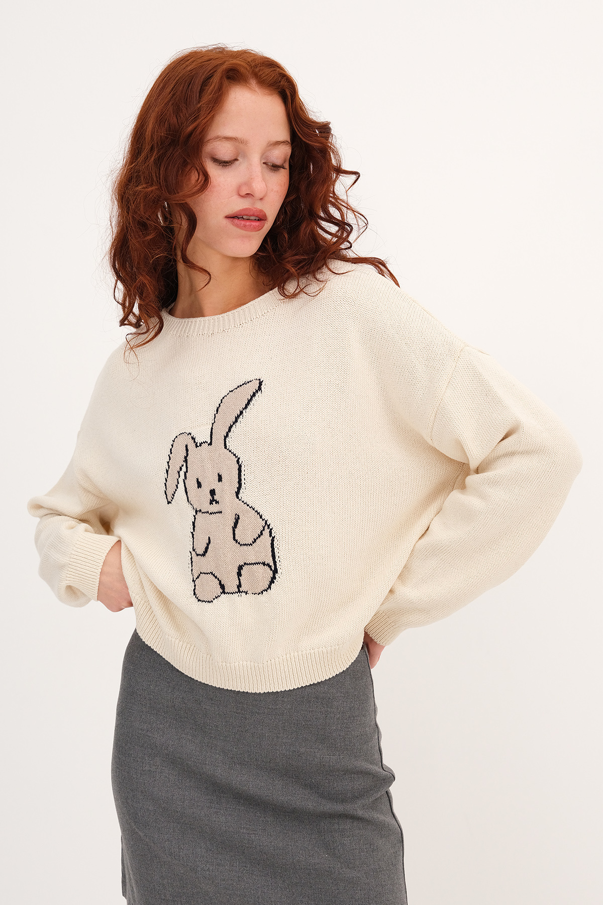 Tavşan Desenli Triko Kazak K3491 Tavşan Desenli Triko Kazak K3491 ADX-00036091 Standart