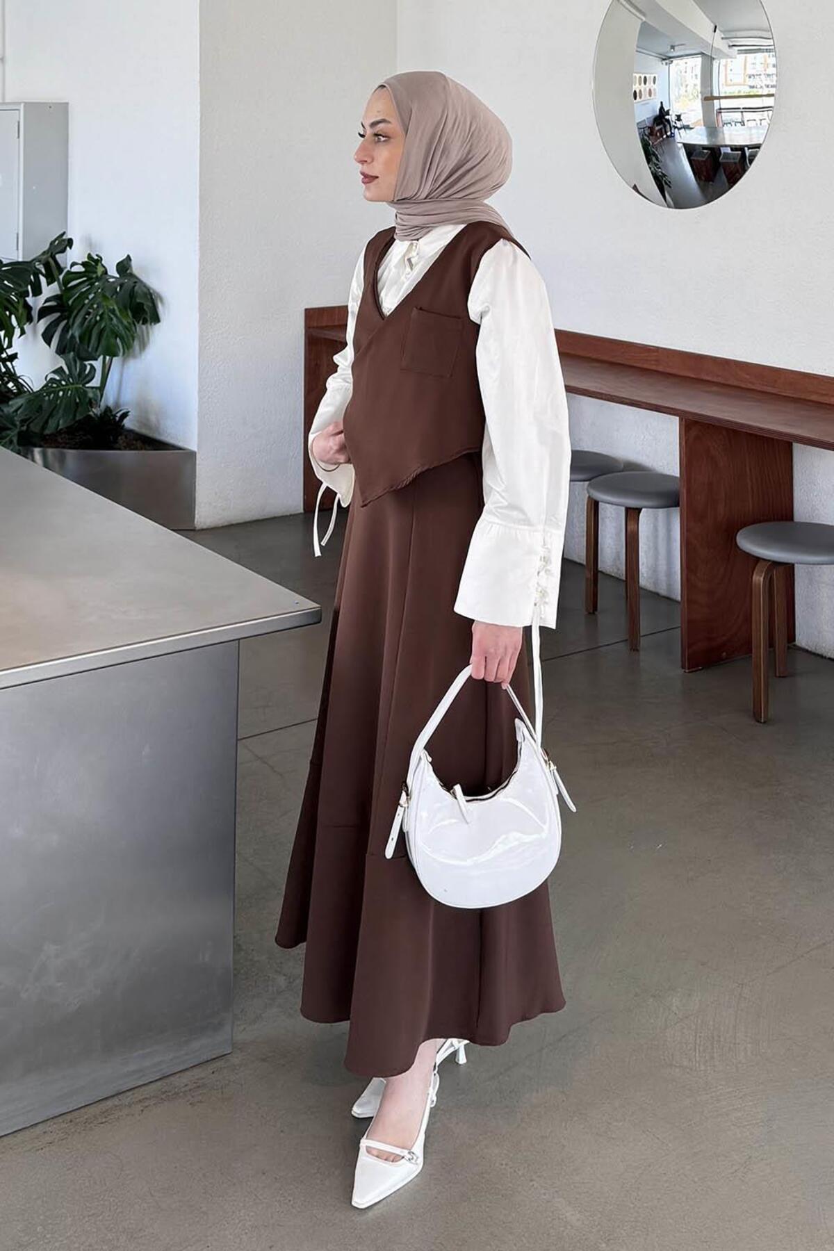Crop Yelek-Etekli İkili Takım Acı Kahverengi Crop Yelek-Etekli İkili Takım Acı Kahverengi EFL0010 XL