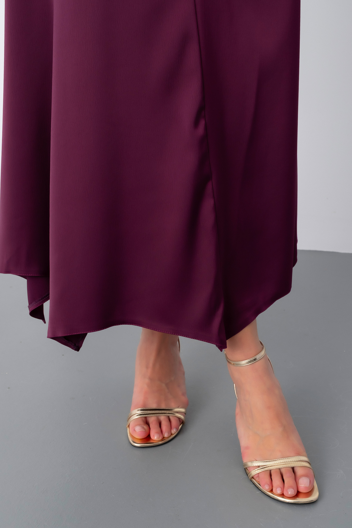 Kadın Mürdüm Degaje Yaka Saten Etek Bluz Takım Kadın Mürdüm Degaje Yaka Saten Etek Bluz Takım 25K840848 L