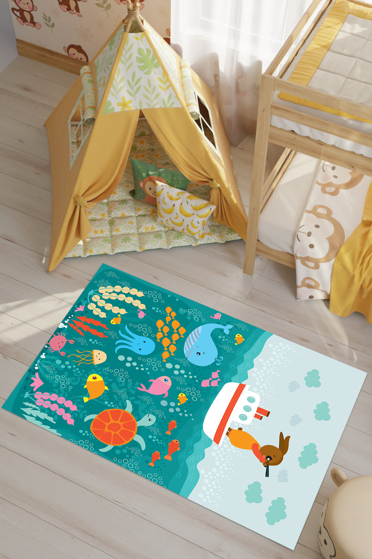 Deniz Desenli Dijital Baskılı Makinede Yıkanabilir Kaymaz Leke Tutmaz Çocuk Odası Halısı Deniz Desenli Dijital Baskılı Makinede Yıkanabilir Kaymaz Leke Tutmaz Çocuk Odası Halısı DPÇ0171 160 x 230