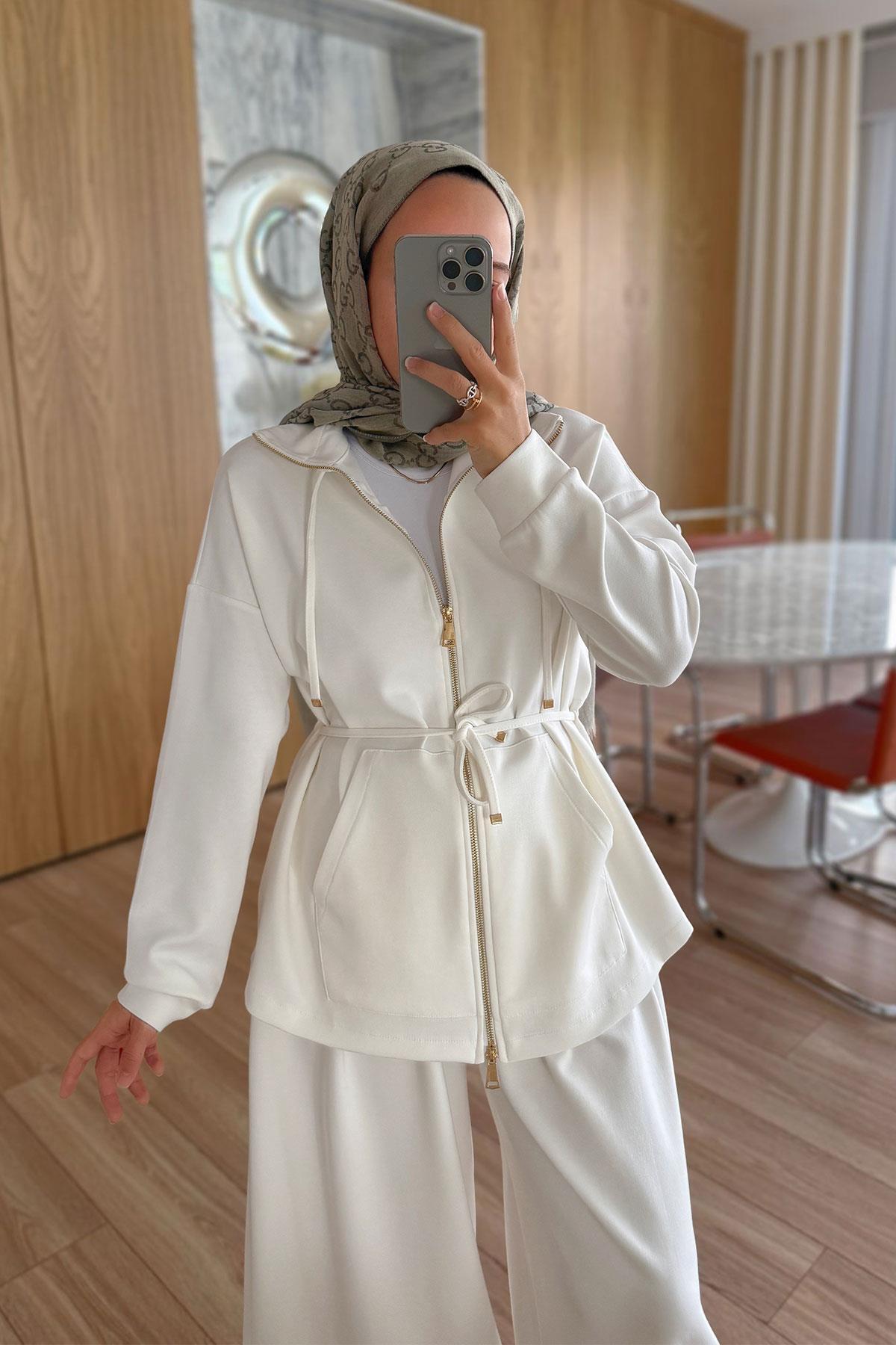 Şalvar Pantolonlu Modal Takım - Beyaz Şalvar Pantolonlu Modal Takım - Beyaz KH-2126 L/XL