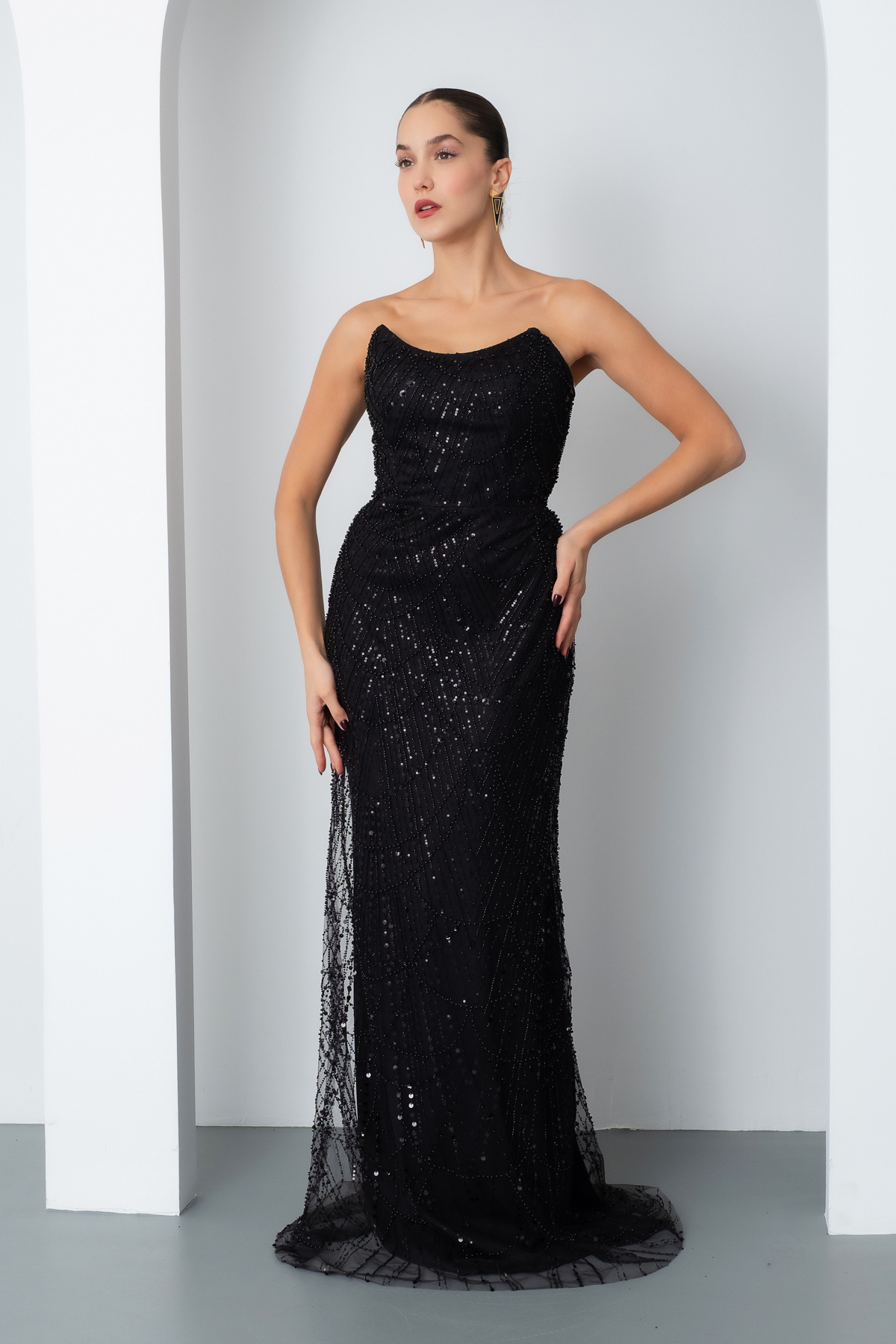 Kadın Lacivert Straplez Taşlı Balık Abiye Elbise Kadın Lacivert Straplez Taşlı Balık Abiye Elbise 25K695379 42
