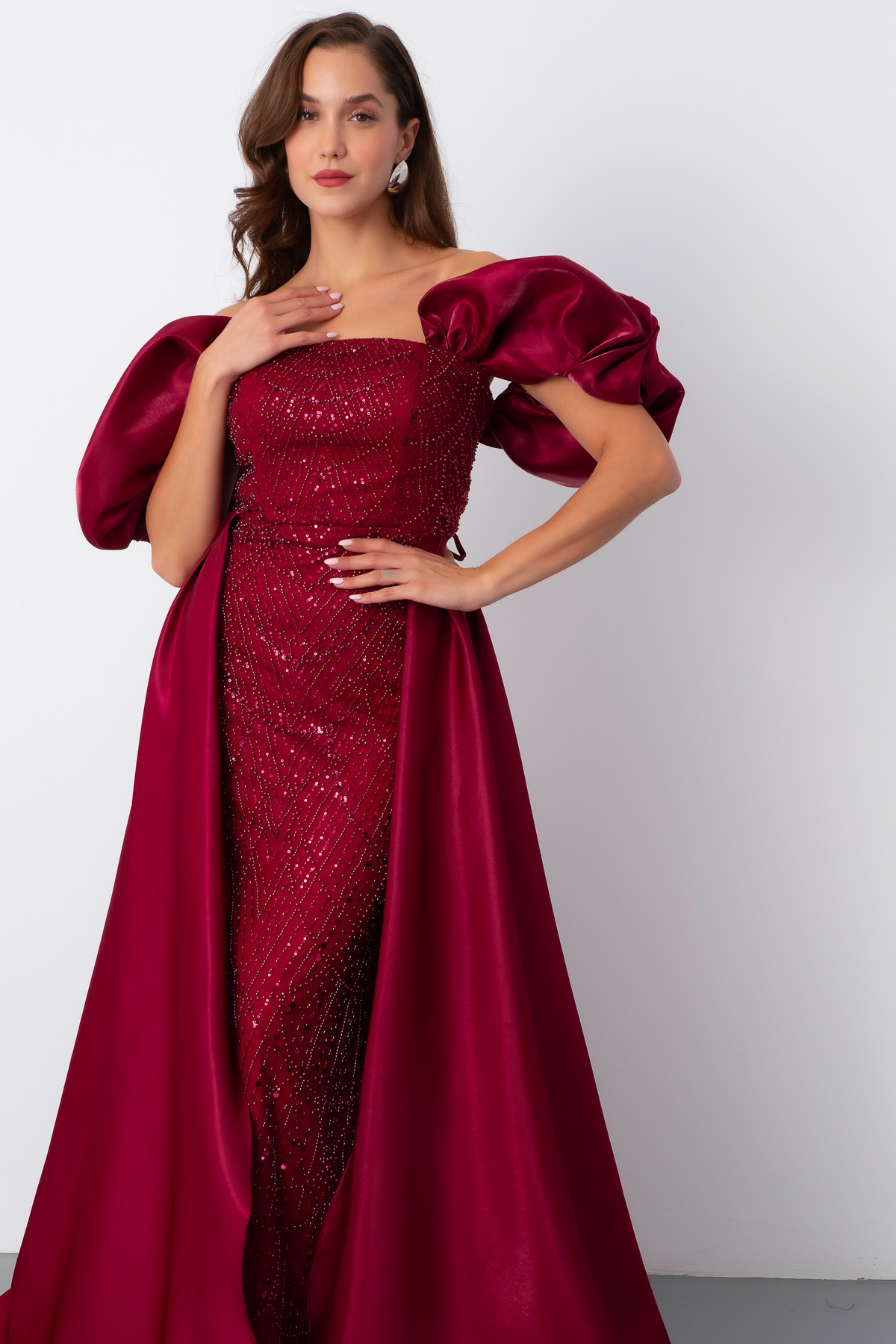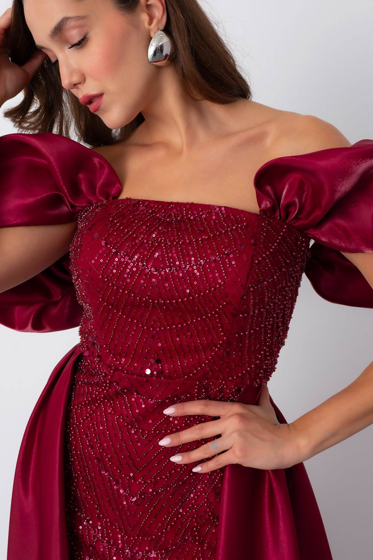 Kadın Bordo Kayık Yaka Saten Kuyruklu Uzun Boncuklu Abiye Kadın Bordo Kayık Yaka Saten Kuyruklu Uzun Boncuklu Abiye 25K695616 42