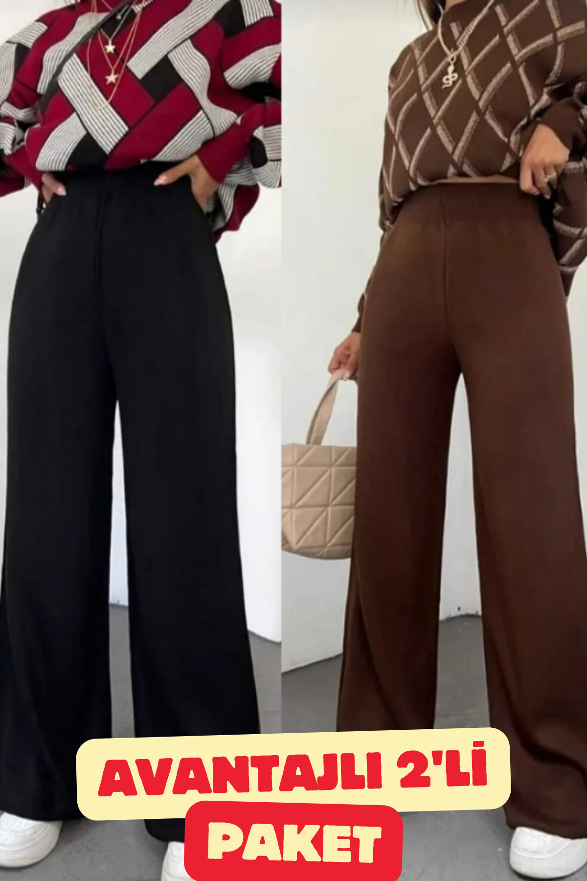 Kadın Triko Bol Paça Rahat Pantolon Kadın Triko Bol Paça Rahat Pantolon CYLAW25-PNT009 Standart