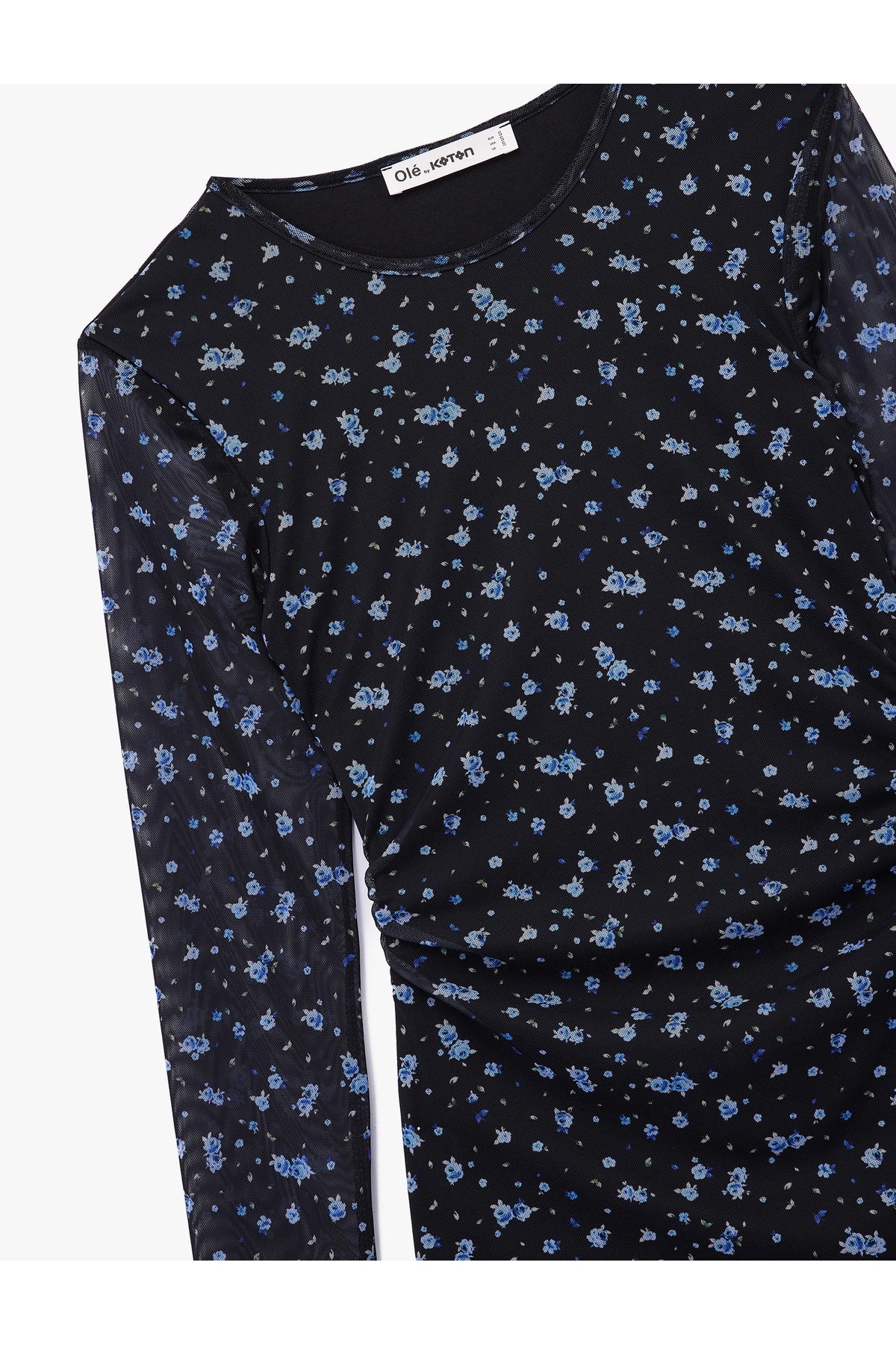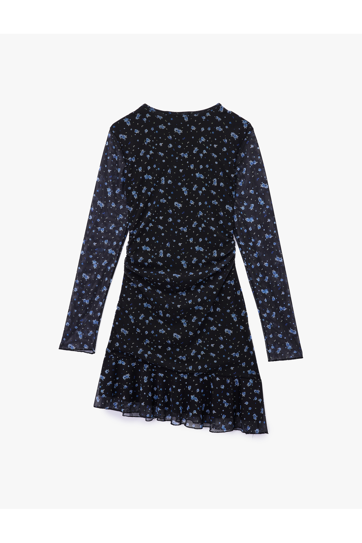 Slim Fit Asimetrik Kesim Uzun Kollu Bisiklet Yaka Çiçekli Elbise Slim Fit Asimetrik Kesim Uzun Kollu Bisiklet Yaka Çiçekli Elbise 6WAL80071IK XL