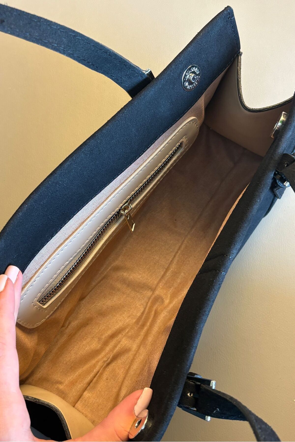Siyah Süet Kadın Omuz Çanta Siyah Süet Kadın Omuz Çanta Solere تک سایز