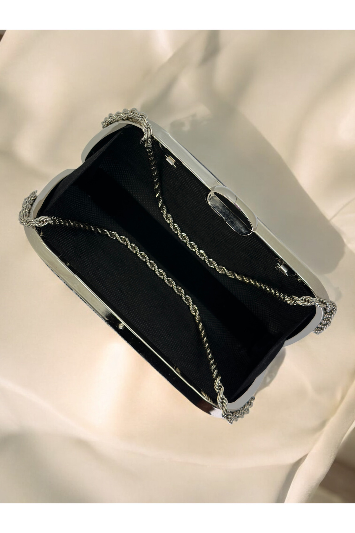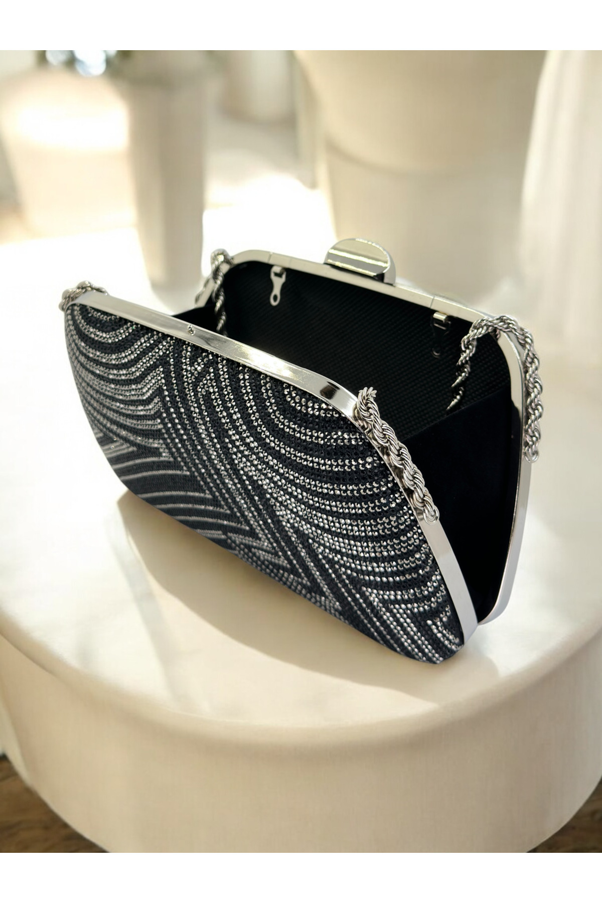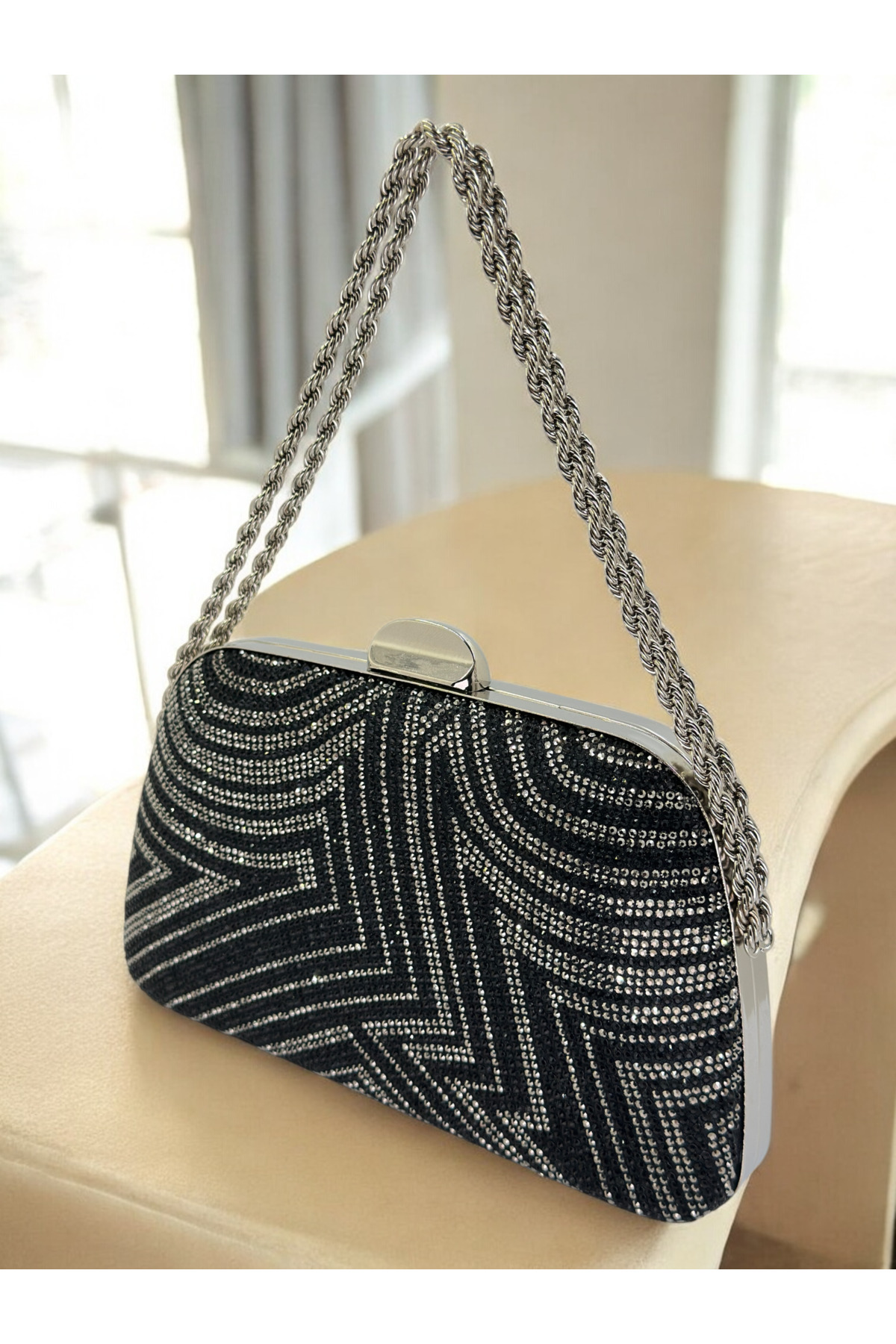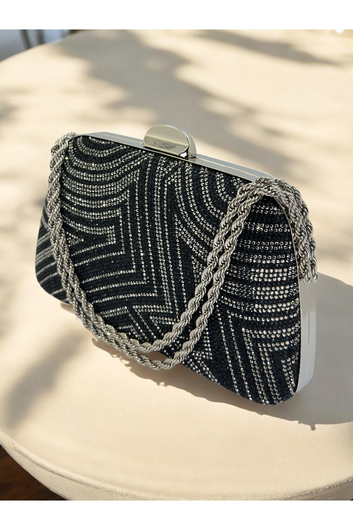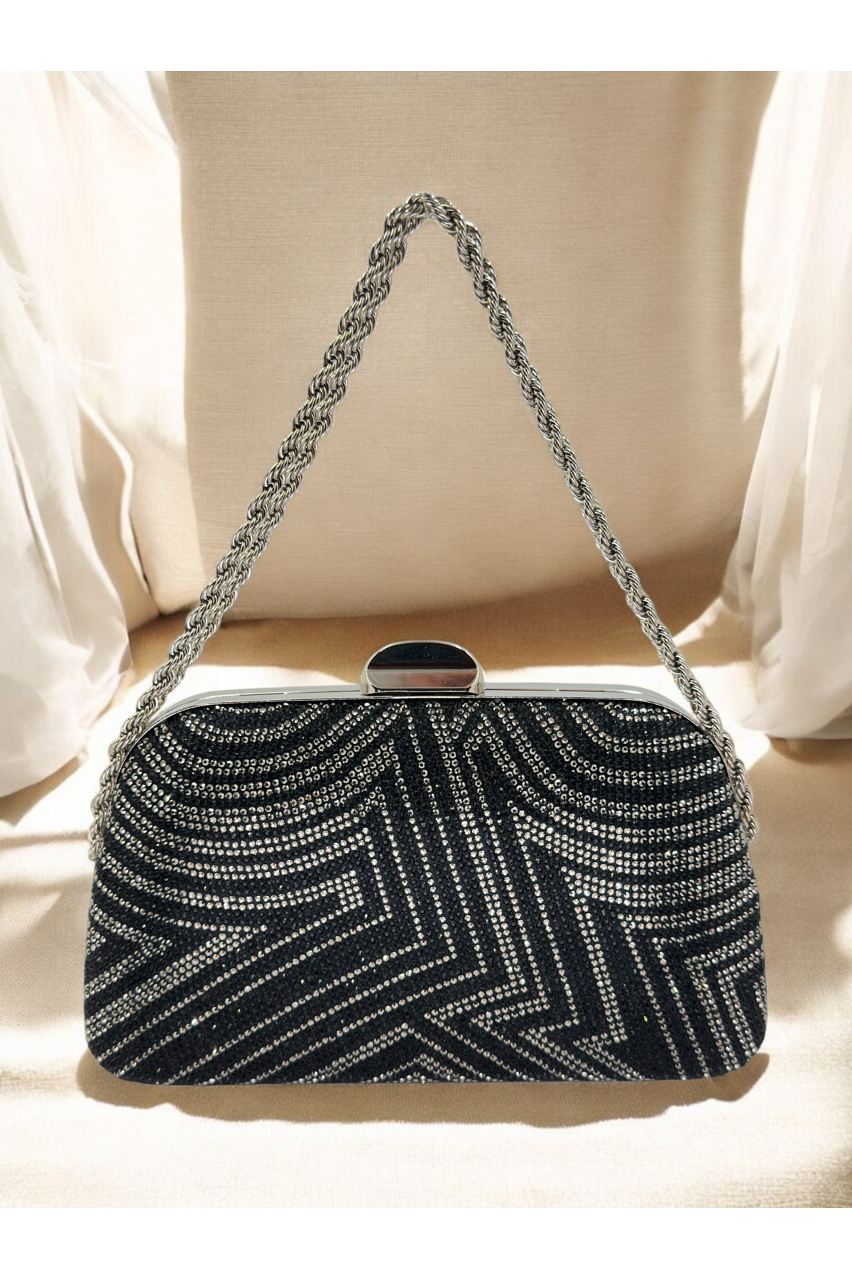 Siyah Ve Platin Renk Taşlı İnci Detaylı Zincir Saplı Kadın Abiye Çanta Düğün Nişan Mezuniyet Siyah Ve Platin Renk Taşlı İnci Detaylı Zincir Saplı Kadın Abiye Çanta Düğün Nişan Mezuniyet 134-8 DMC تک سایز