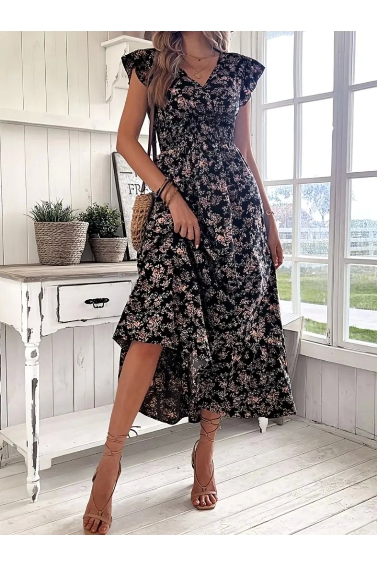Kadın Kısa Kollu Kruvaze Yaka Beli Lastikli çiçek Desenli Elbise Kadın Kısa Kollu Kruvaze Yaka Beli Lastikli çiçek Desenli Elbise 152408 2XL-3XL