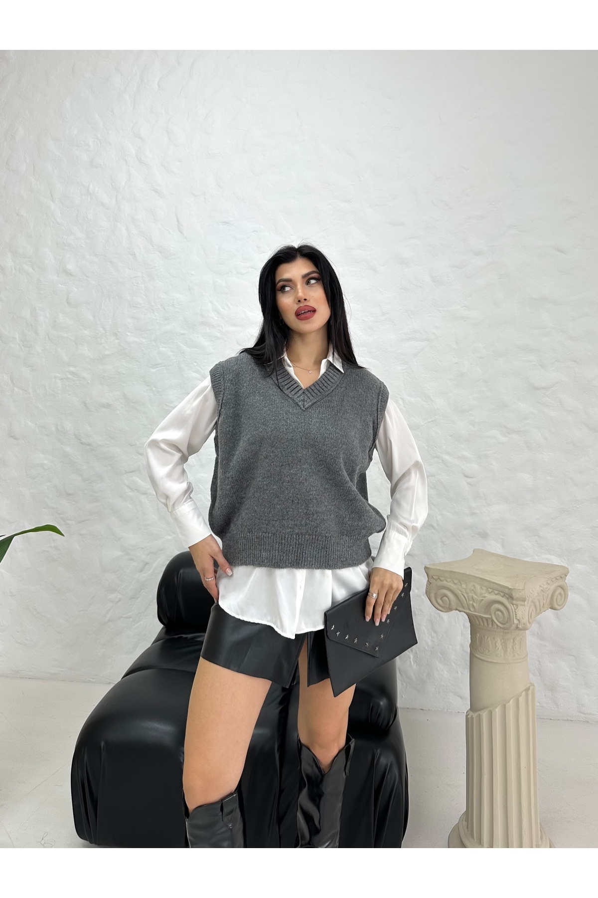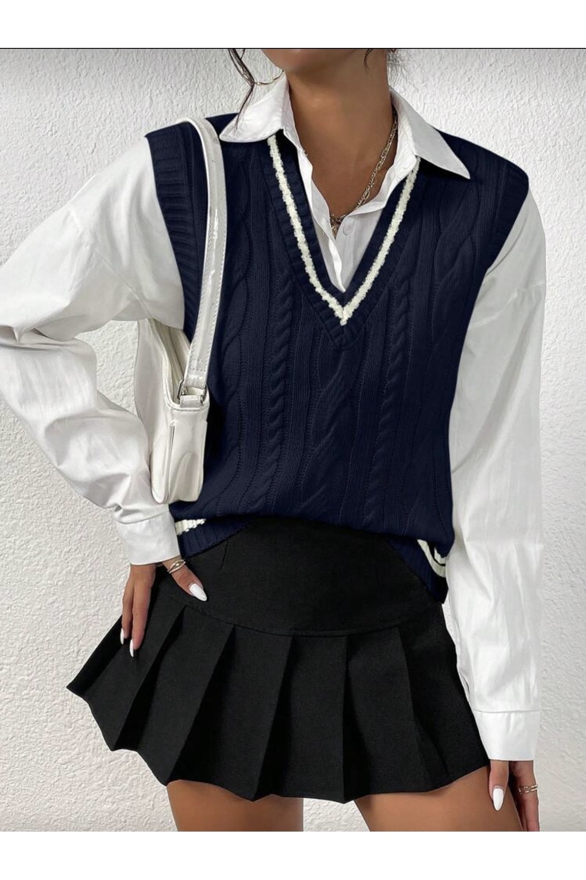 Saç Örgü V Yaka Sıfır Kol Süveter Saç Örgü V Yaka Sıfır Kol Süveter süveter L