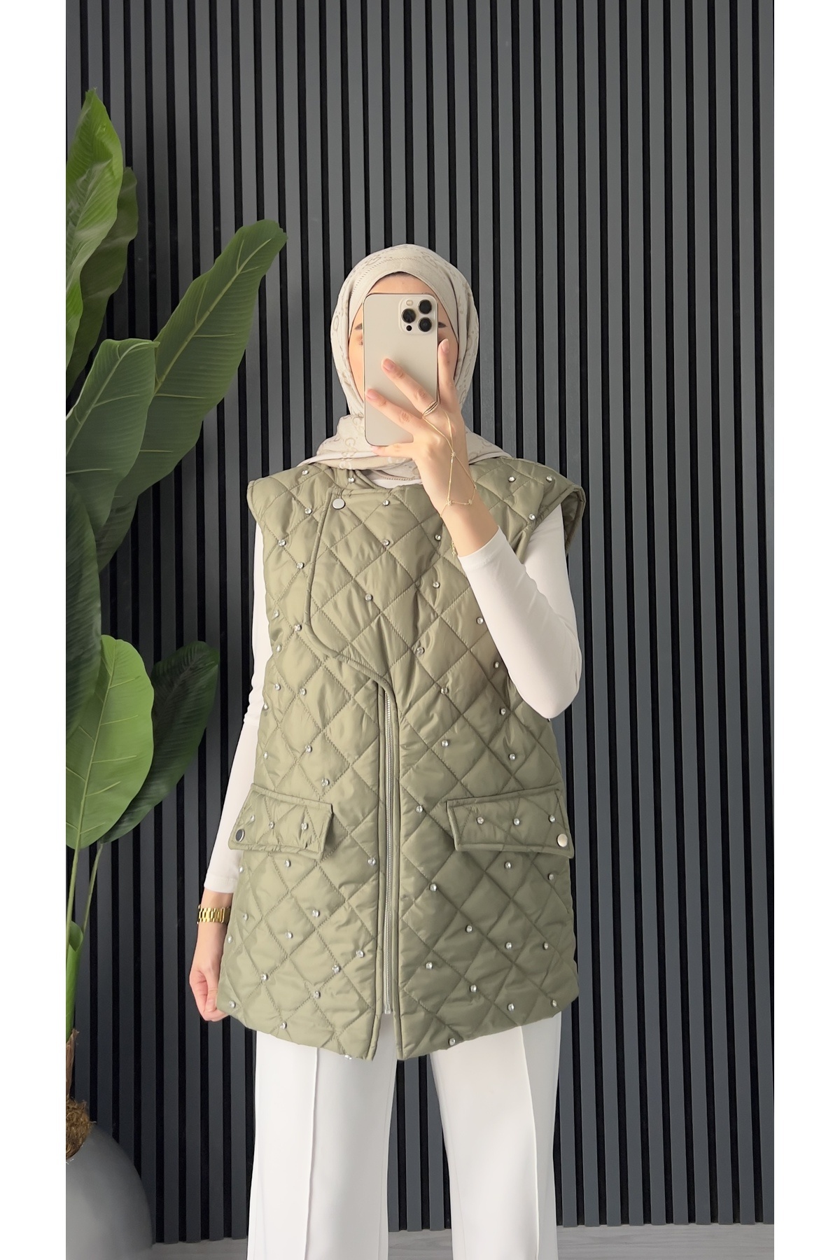 Kadın Şık Taş Detaylı Astarlı Kapitone Midi Yelek Kadın Şık Taş Detaylı Astarlı Kapitone Midi Yelek s2422542312 2