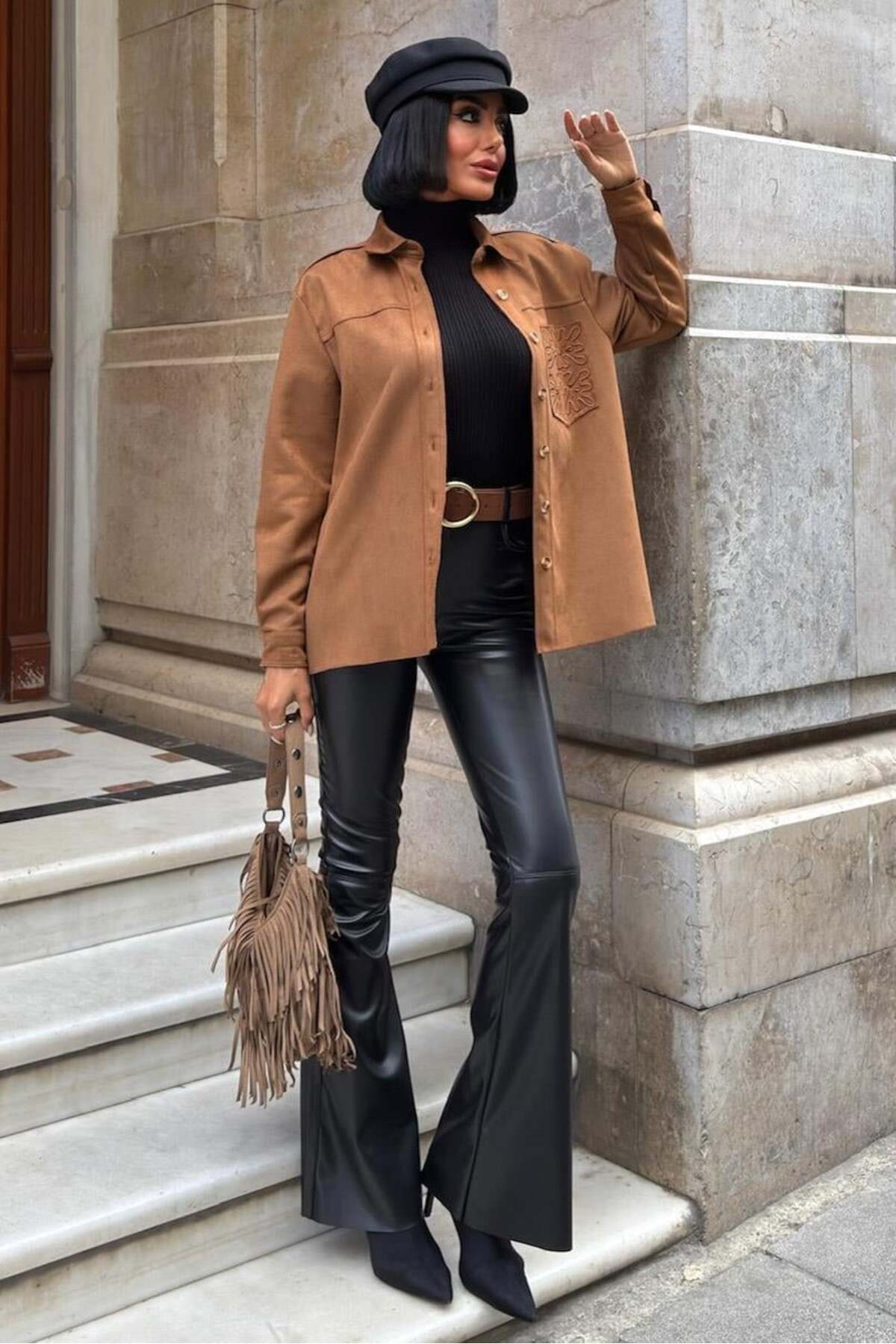 Cebi Nakış Detaylı Süet Gömlek -TABA Cebi Nakış Detaylı Süet Gömlek -TABA S6K3484X XL