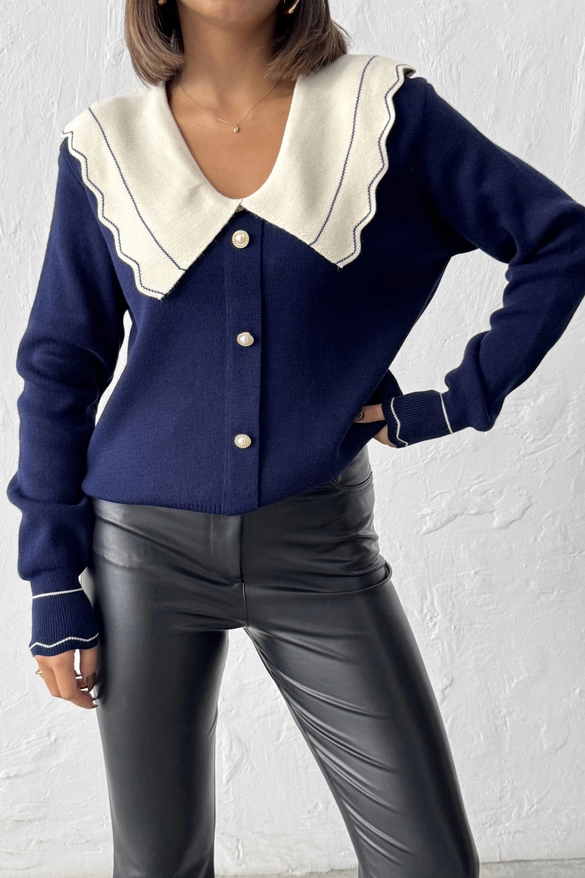 Kadın Lacivert Şık Yaka Detaylı Düğmeli Hırka (Yeni Renk) Kadın Lacivert Şık Yaka Detaylı Düğmeli Hırka (Yeni Renk) LSN095 Standart