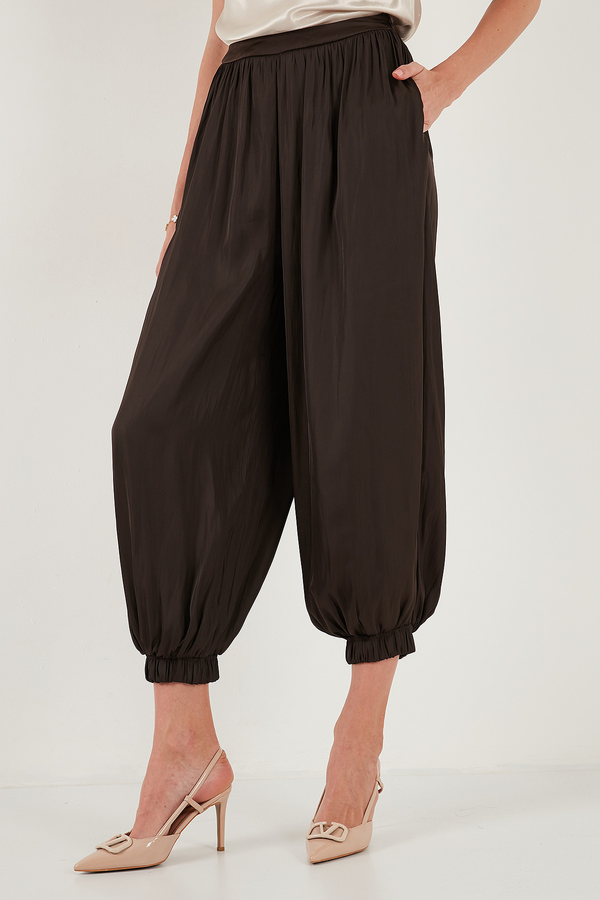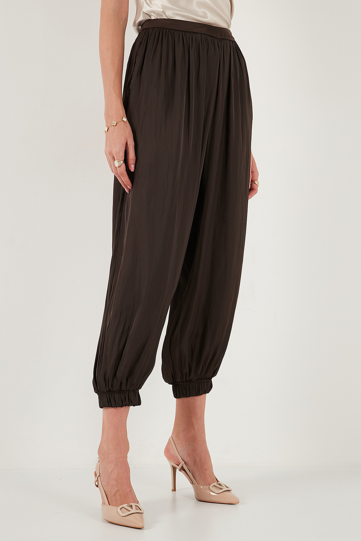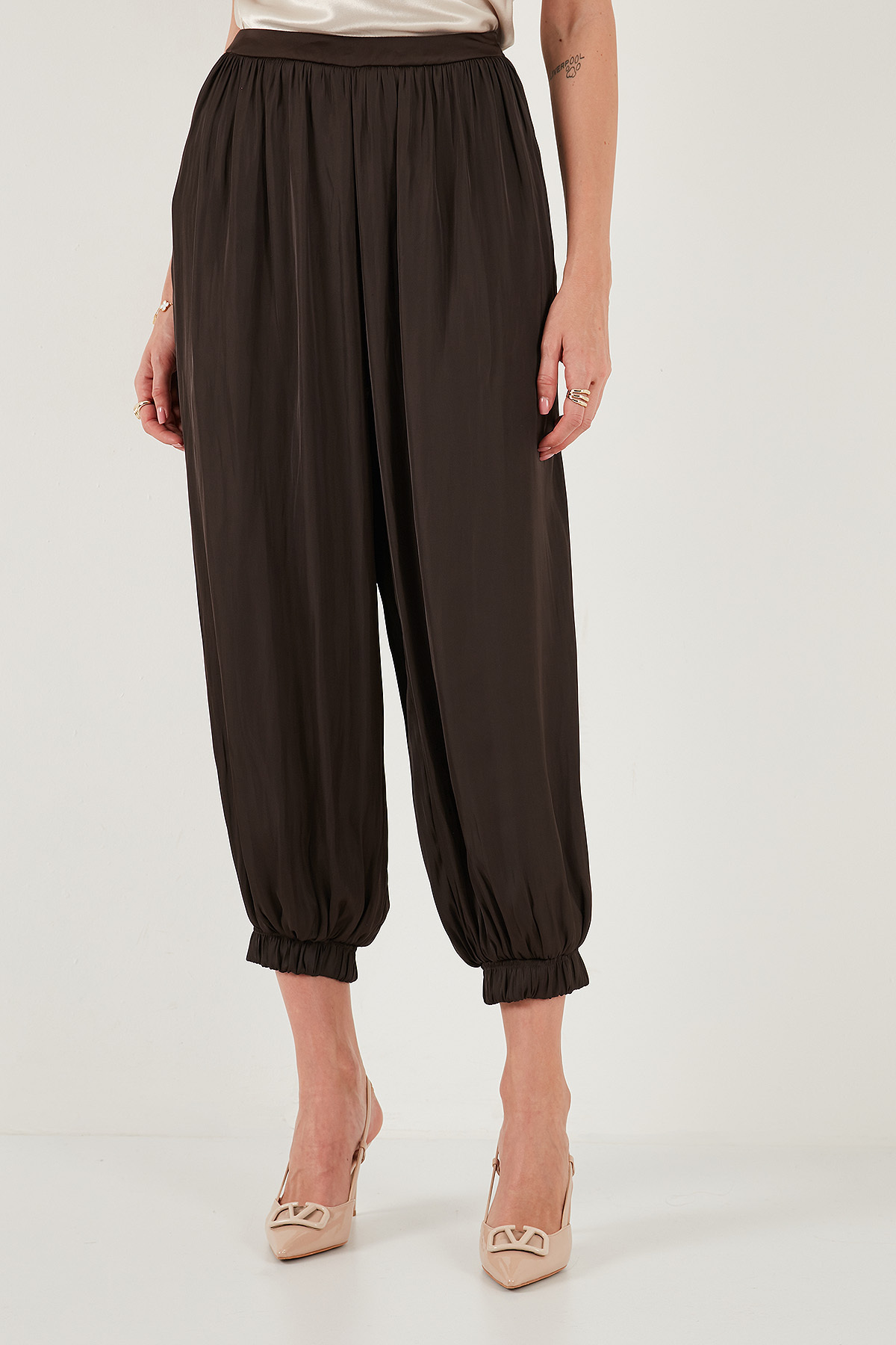 Comfort Fit Yüksek Bel Lastikli Paça Saten Pantolon PANTOLON 68351217 Comfort Fit Yüksek Bel Lastikli Paça Saten Pantolon PANTOLON 68351217 L