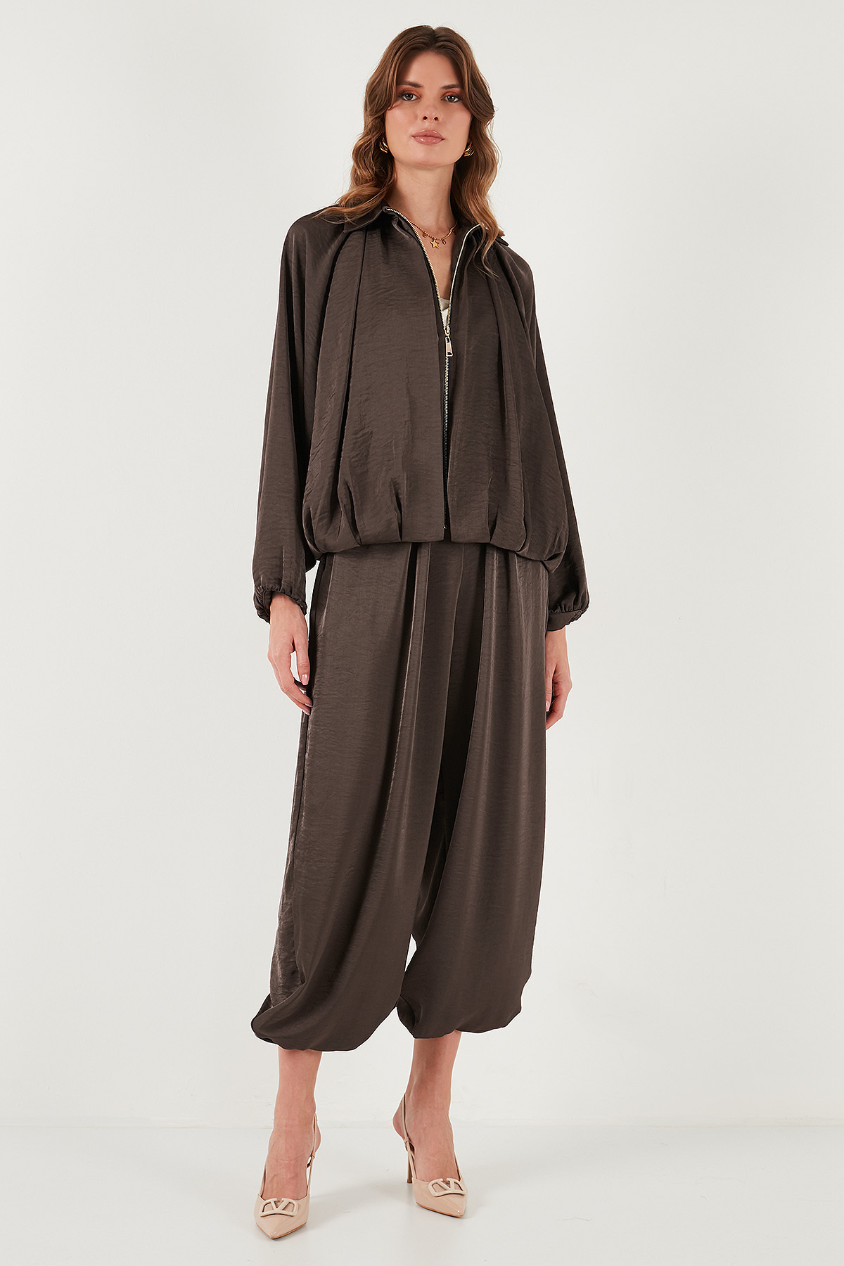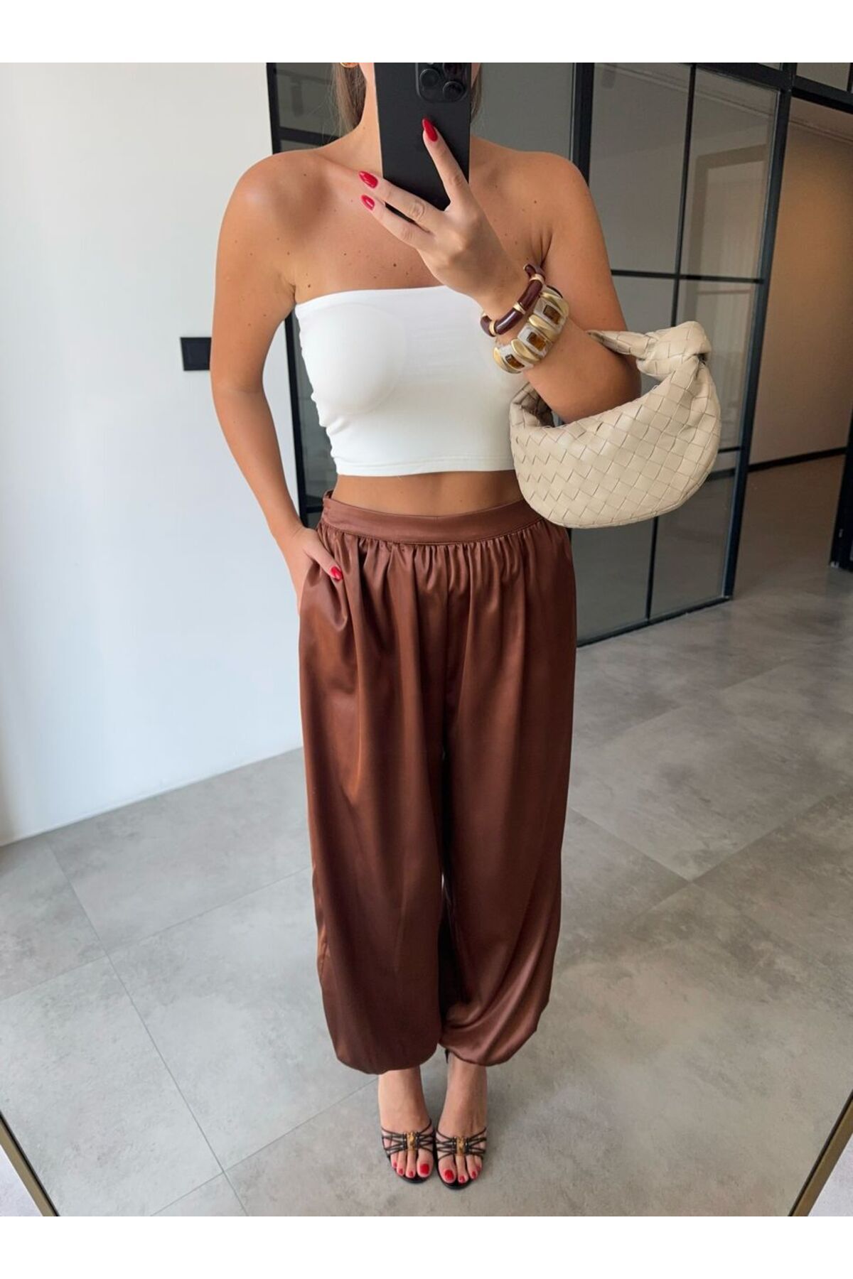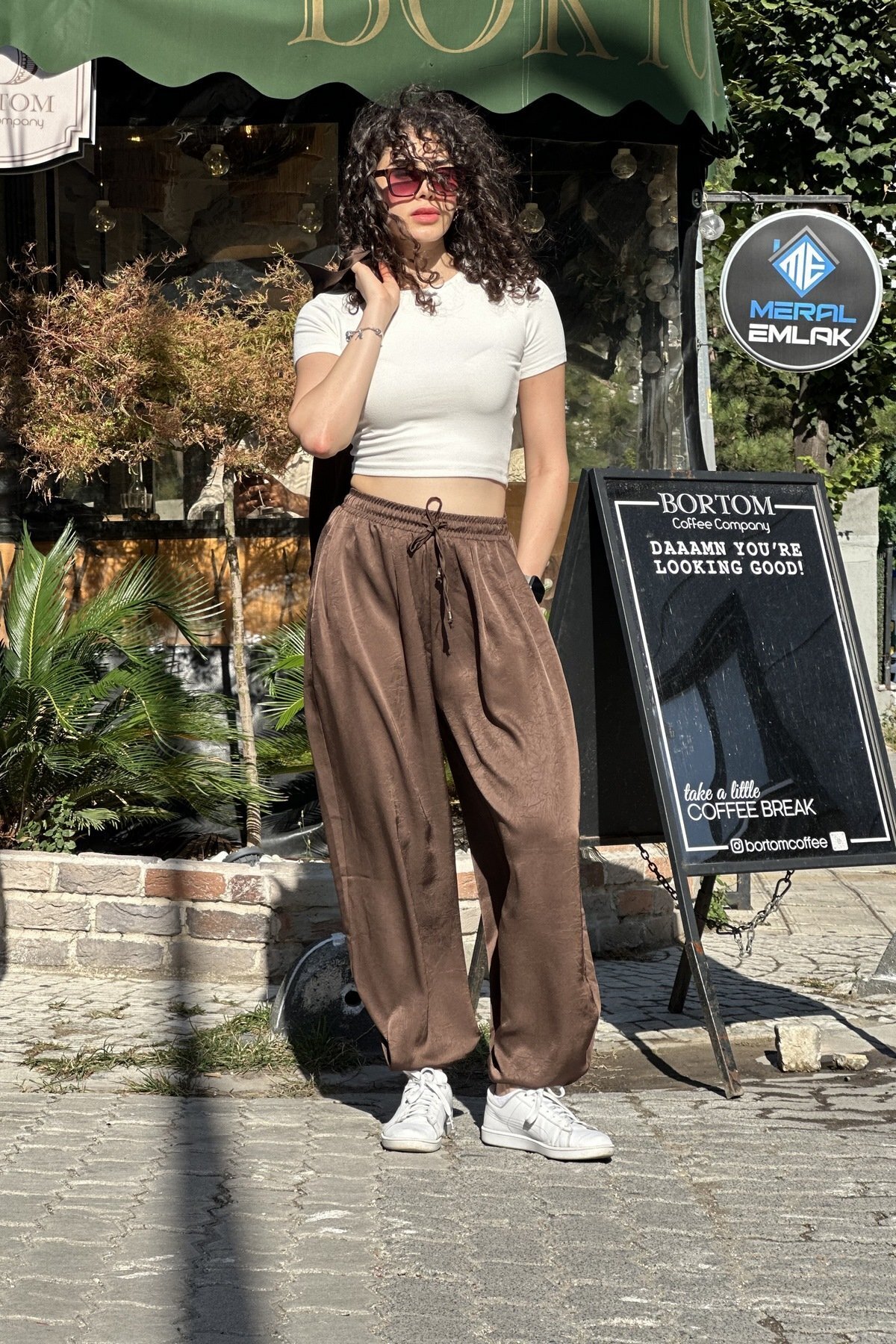 Comfort Fit Yüksek Bel Lastikli Paça Saten Pantolon PANTOLON 68351217 Comfort Fit Yüksek Bel Lastikli Paça Saten Pantolon PANTOLON 68351217 L