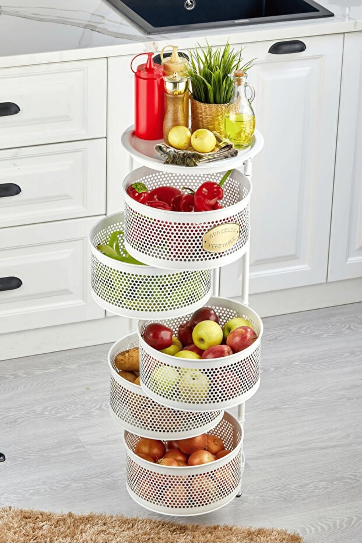 Metal Sebzelik Meyvelik, Yuvarlak Mutfak Rafı, Çok Amaçlı Patates Soğan Sepeti Metal Sebzelik Meyvelik, Yuvarlak Mutfak Rafı, Çok Amaçlı Patates Soğan Sepeti TRK.SB.ERG تک سایز