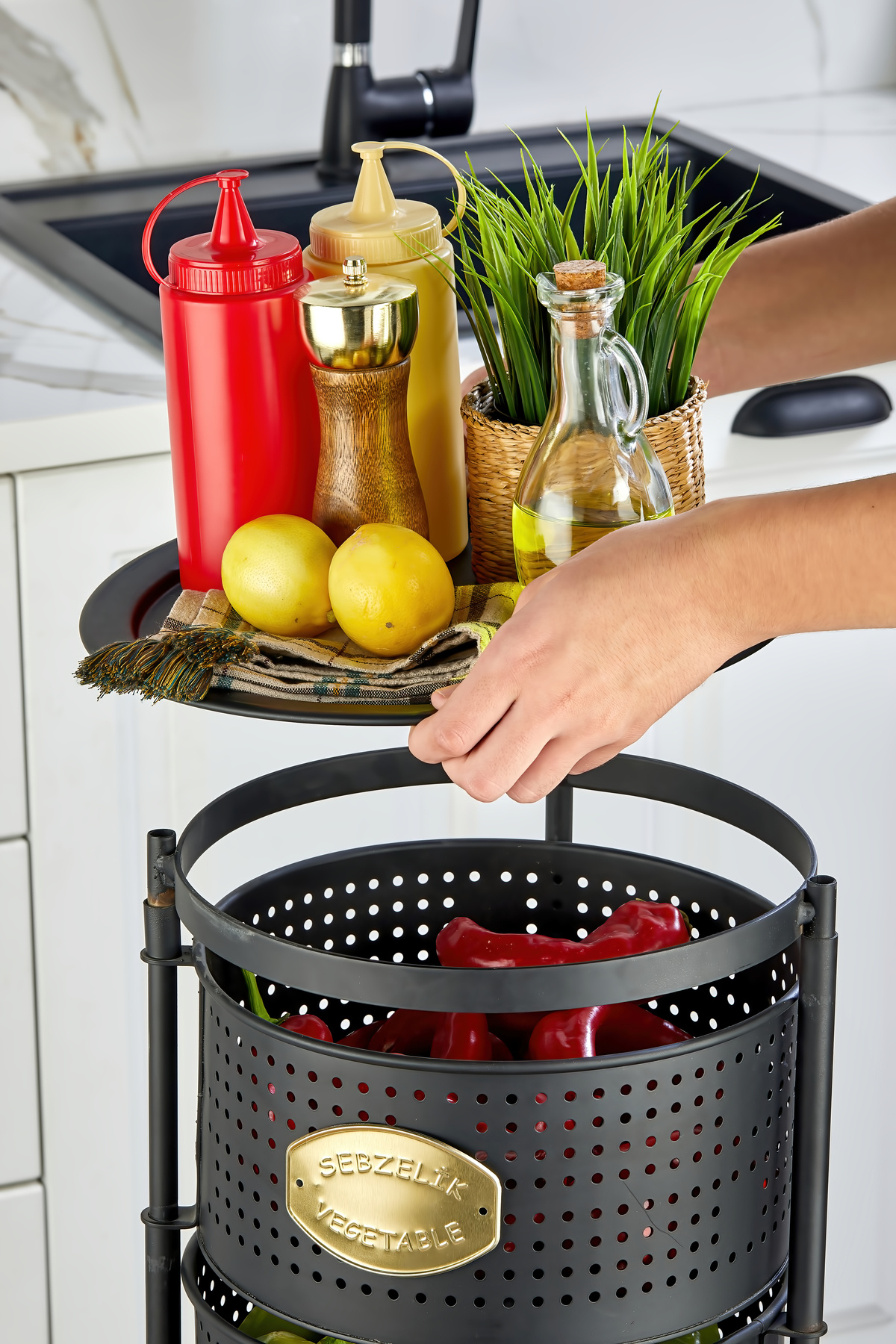 Metal Sebzelik Meyvelik, Yuvarlak Mutfak Rafı, Çok Amaçlı Patates Soğan Sepeti Metal Sebzelik Meyvelik, Yuvarlak Mutfak Rafı, Çok Amaçlı Patates Soğan Sepeti TRK.SB.ERG تک سایز