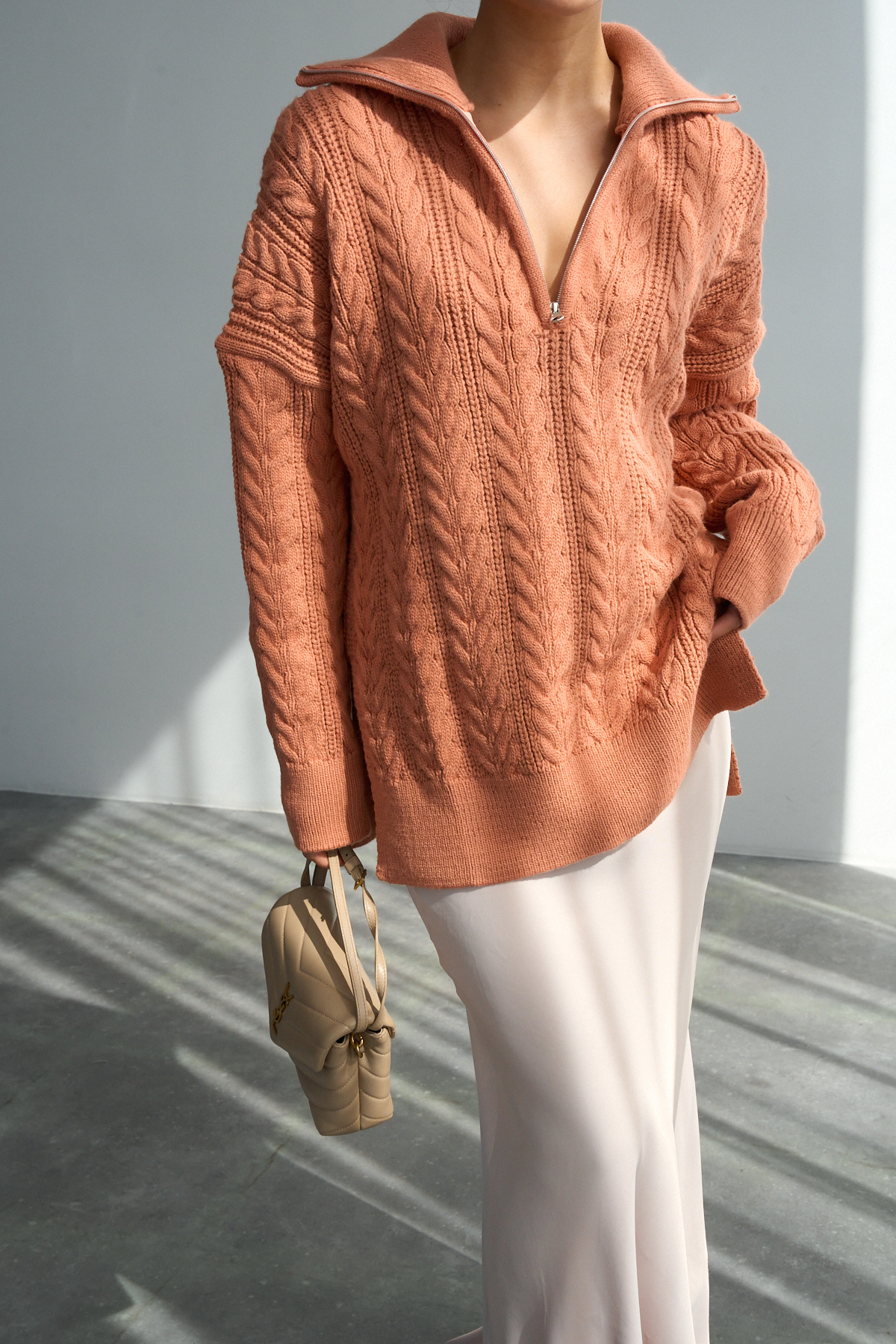 Kadın Fermuar Yaka Saç Örgü Desenli Premium Doku Overisize Kazak Kadın Fermuar Yaka Saç Örgü Desenli Premium Doku Overisize Kazak TK251066 Standart