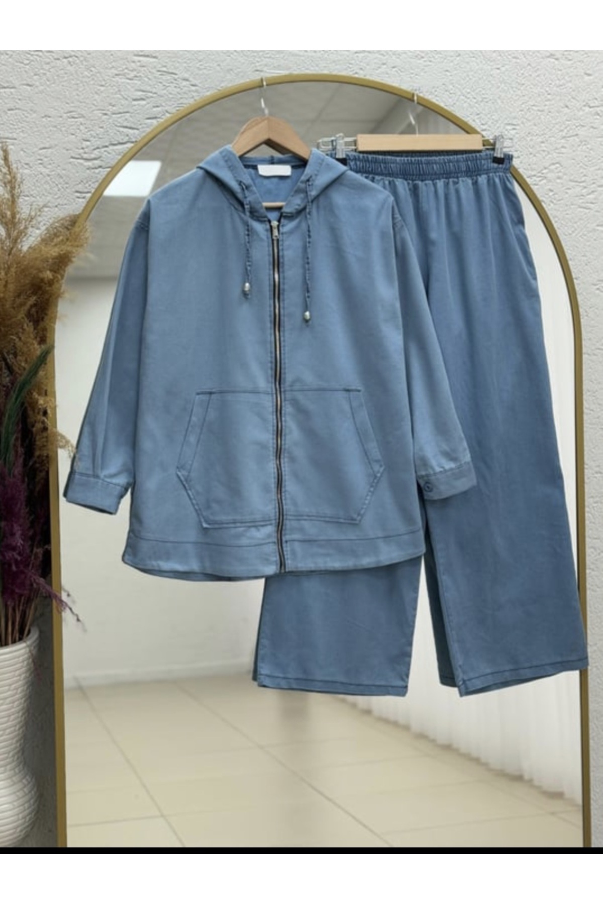 Kadın Fermuarlı Kapüşonlu Tunik Pantolon ikili Takım Kadın Fermuarlı Kapüşonlu Tunik Pantolon ikili Takım KOTGÖMLEKLİTAKIM 3