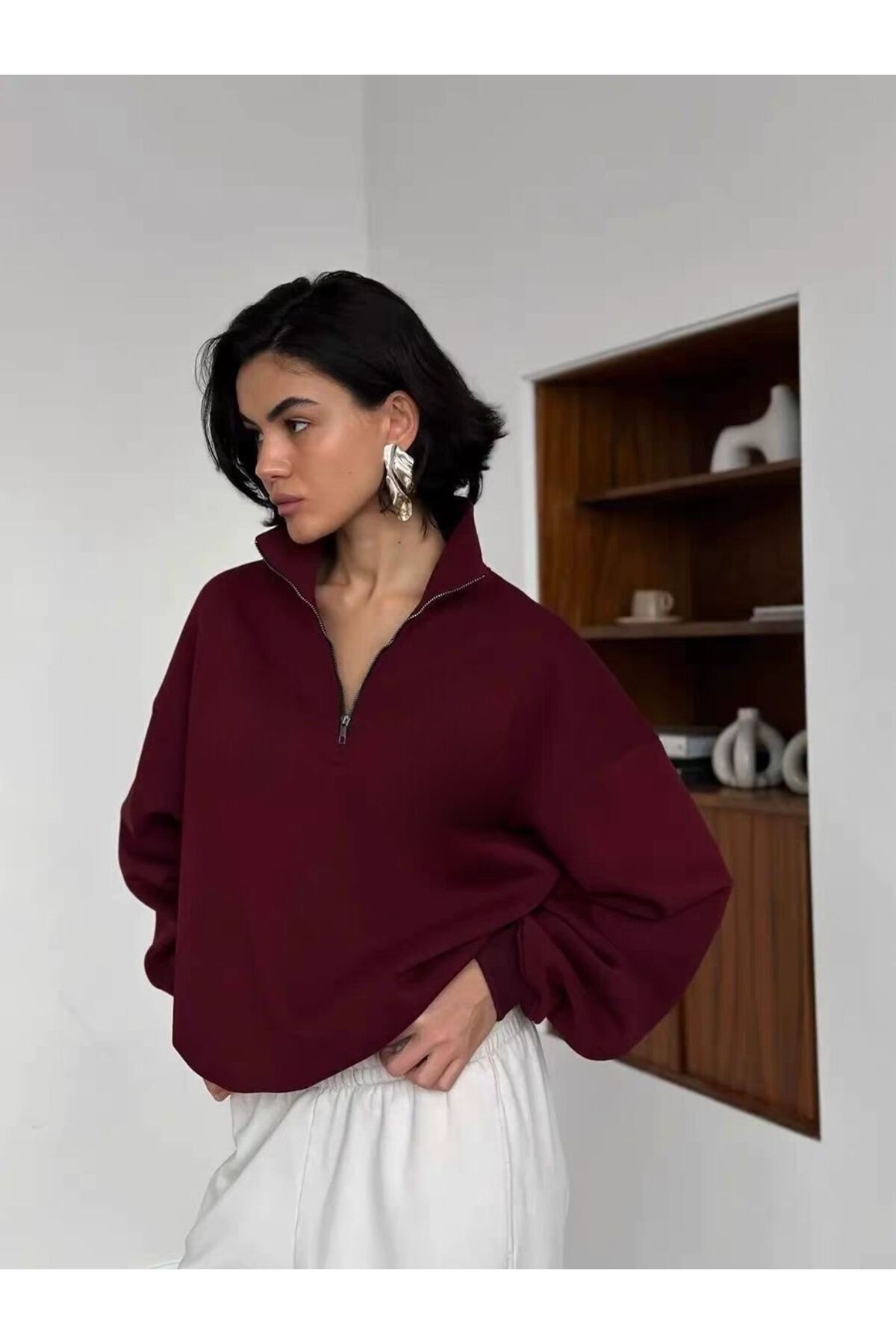Kadın Bej Premium Oversize Kesim Uzun Kollu Fermuarlı Sweatshirt Kadın Bej Premium Oversize Kesim Uzun Kollu Fermuarlı Sweatshirt SS07102507 XL