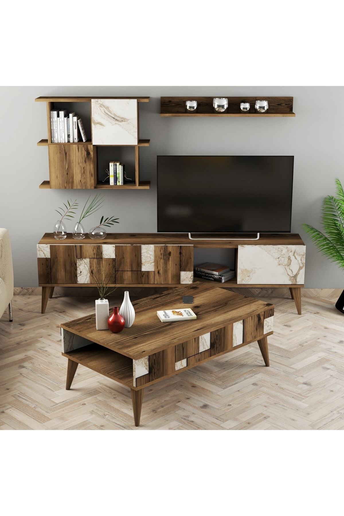 Madrid Tv Ünitesi Ve Orta Sehpa Takımı - Ceviz / Antrasit Madrid Tv Ünitesi Ve Orta Sehpa Takımı - Ceviz / Antrasit mdrdtk تک سایز