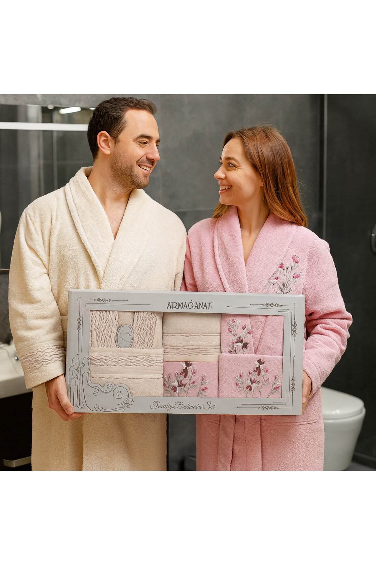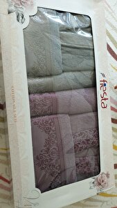 537 Yıldız Desen Gri-Mürdüm 537 Yıldız Desen Gri-Mürdüm Fiesta Bornoz Takımı M