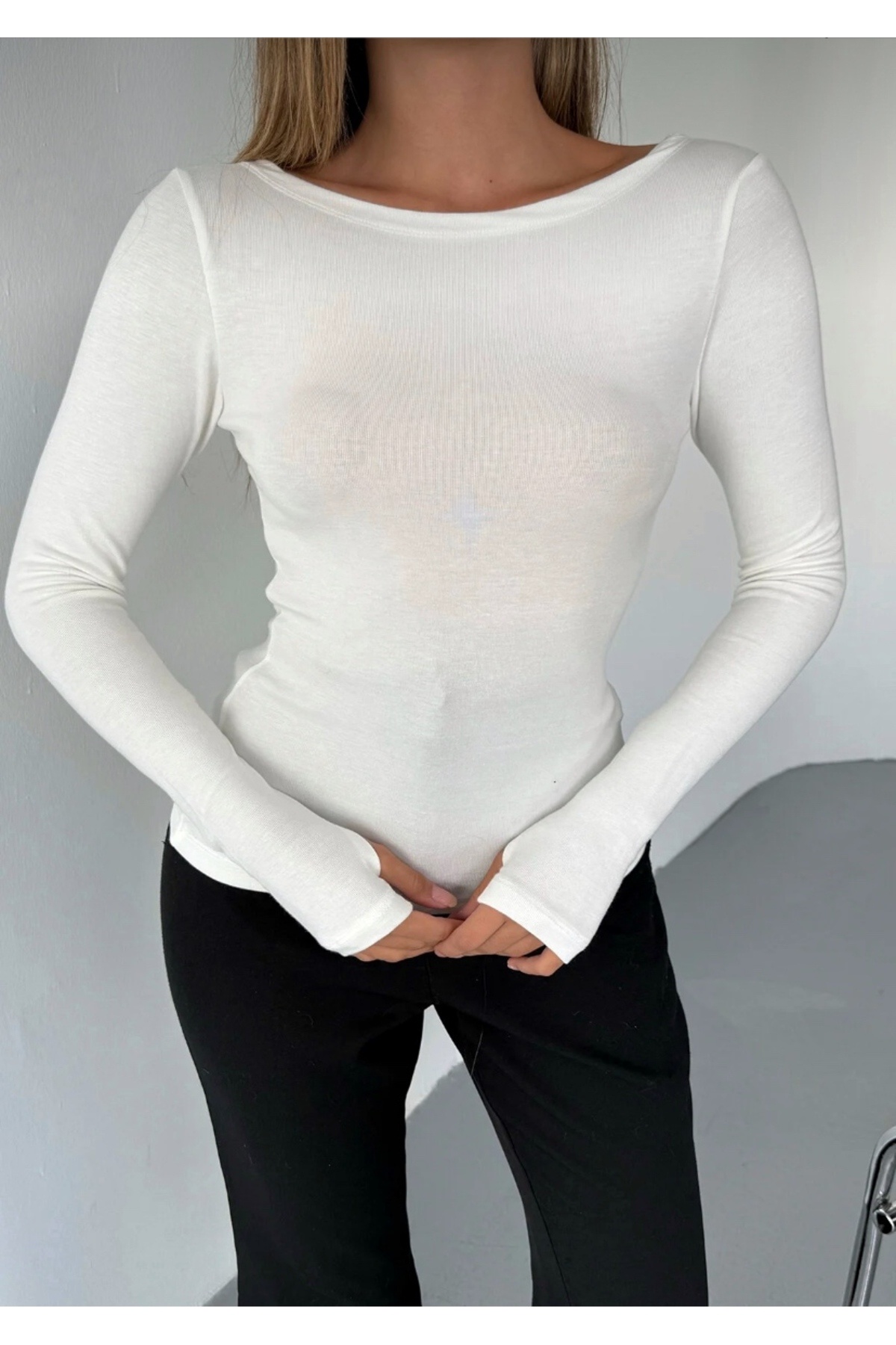 Kayık Yaka Parmak Geçirmeli Modal Kumaş Bluz Kayık Yaka Parmak Geçirmeli Modal Kumaş Bluz KAYIK YAKA BLUZ XL