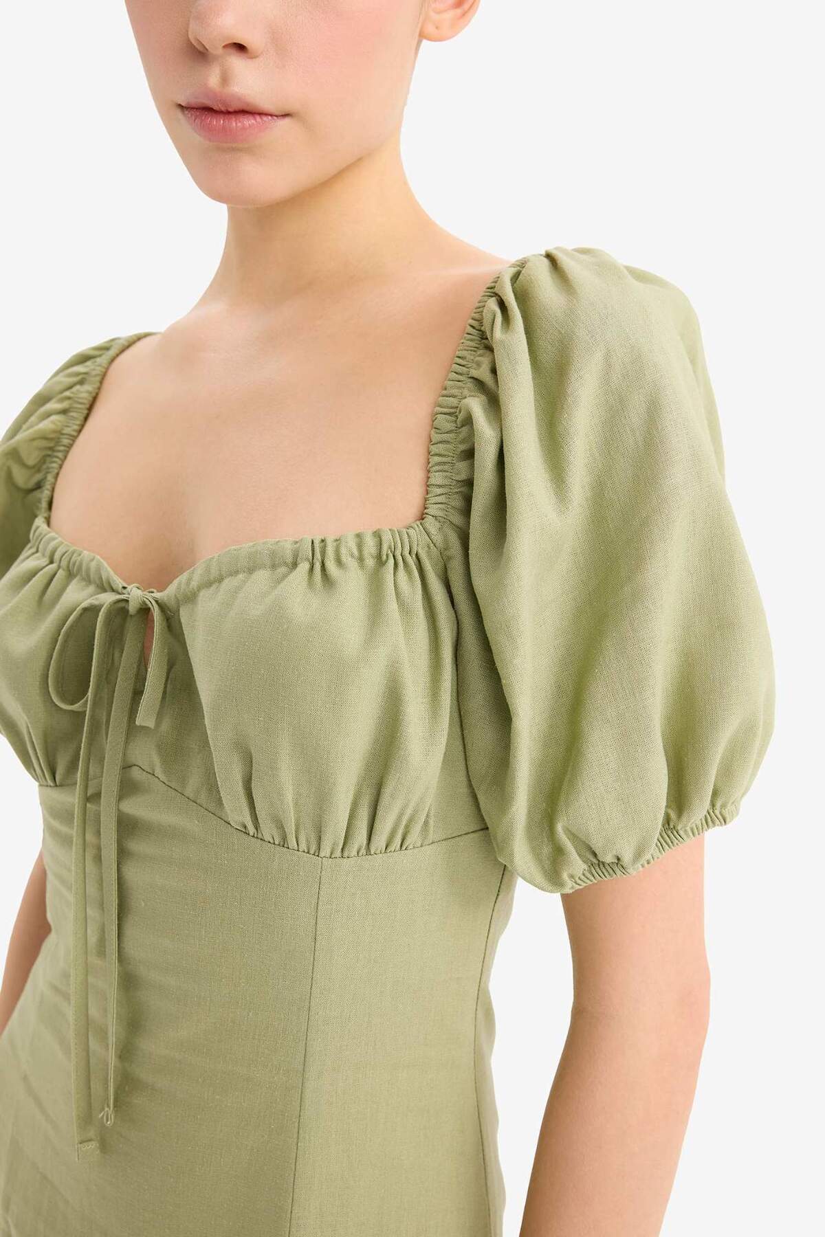 Kalp Yaka Yırtmaçlı Keten Karışımlı Kısa Kollu Midi Elbise C0941AX25SM Kalp Yaka Yırtmaçlı Keten Karışımlı Kısa Kollu Midi Elbise C0941AX25SM 42