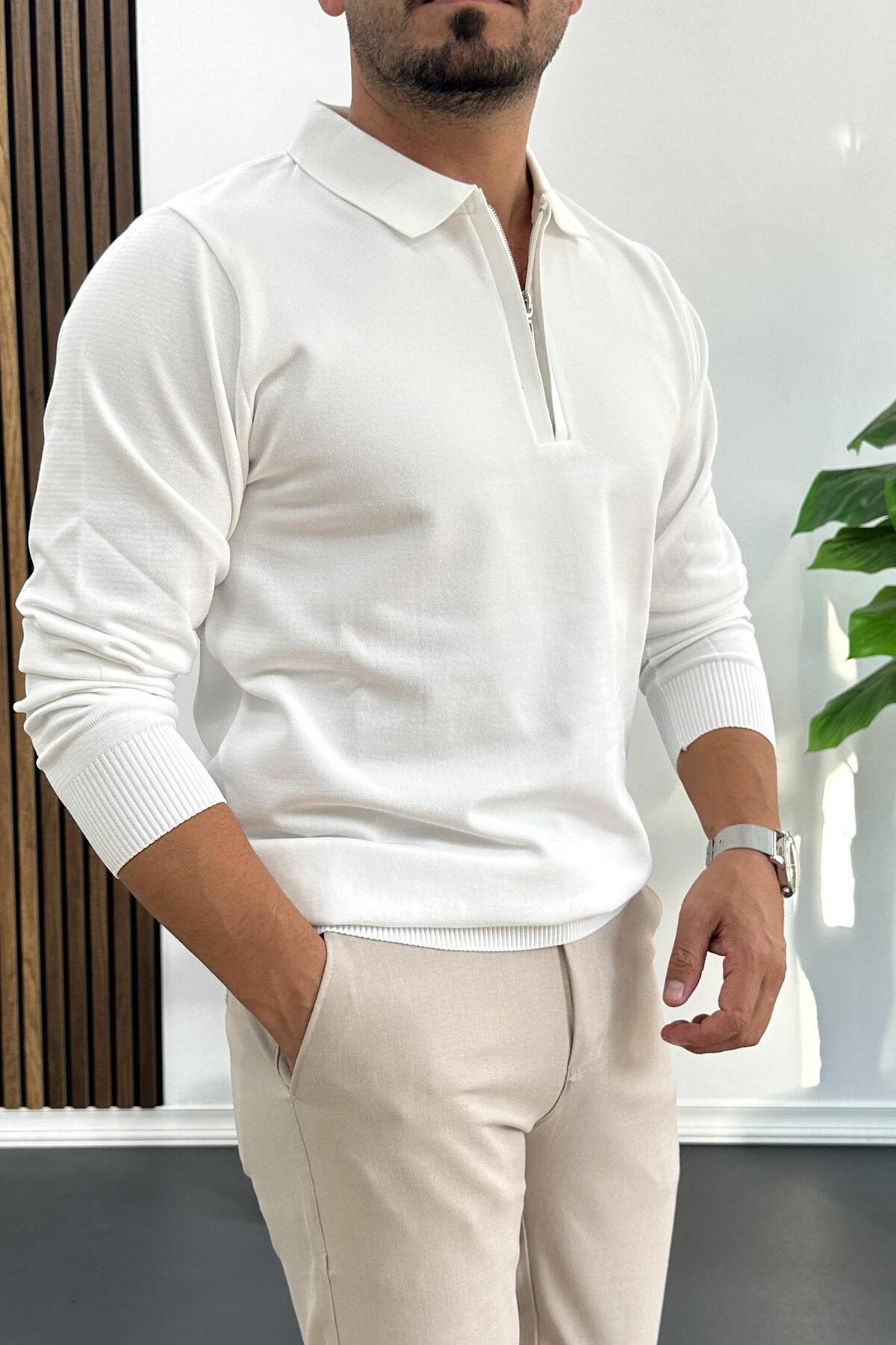 Erkek Yarım Fermuarlı Düz Desen Polo Yaka Kazak Beyaz Edw424 Erkek Yarım Fermuarlı Düz Desen Polo Yaka Kazak Beyaz Edw424 EDW00TX424 2XL