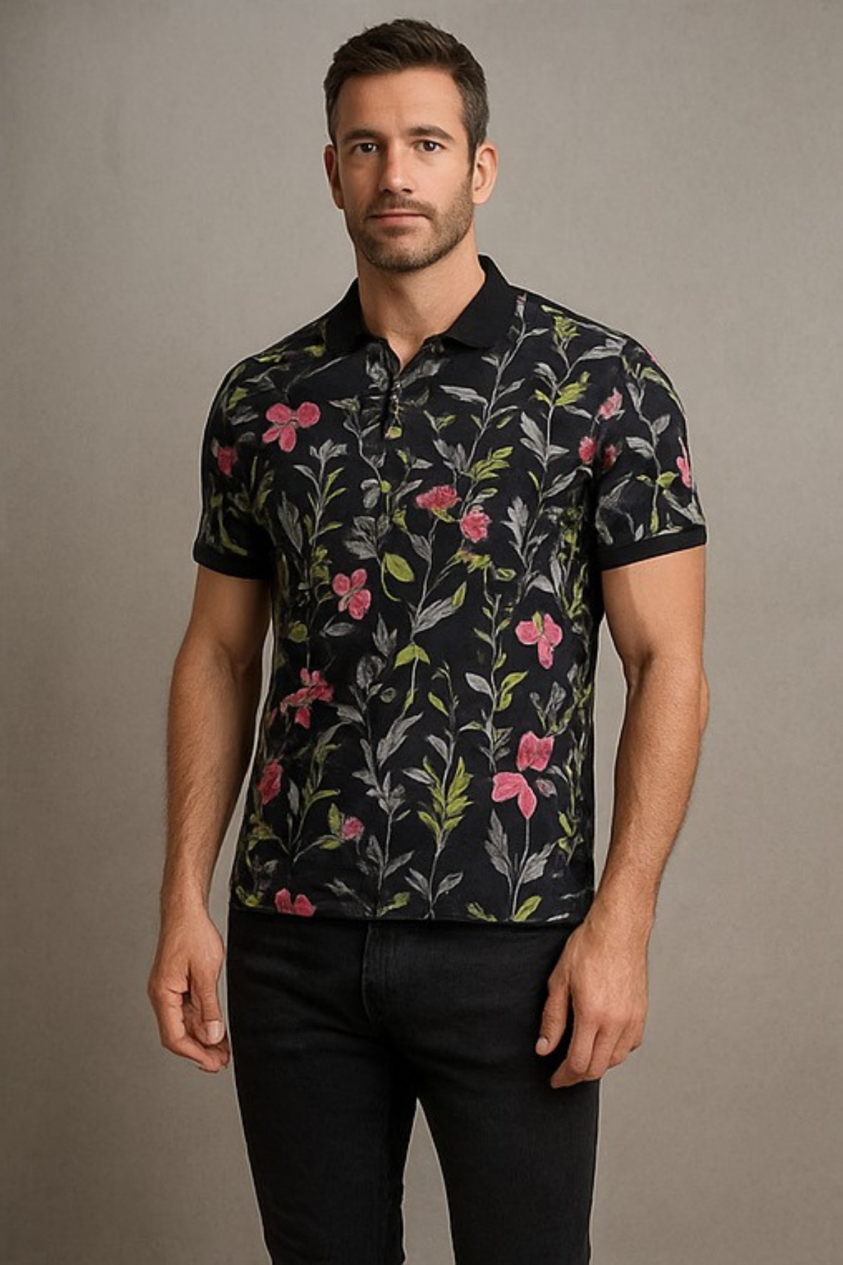 Erkek Polo Yaka Çiçek Desenli Kontrast Yaka Slim Fit Tişört Erkek Polo Yaka Çiçek Desenli Kontrast Yaka Slim Fit Tişört Çiçekli1 XL