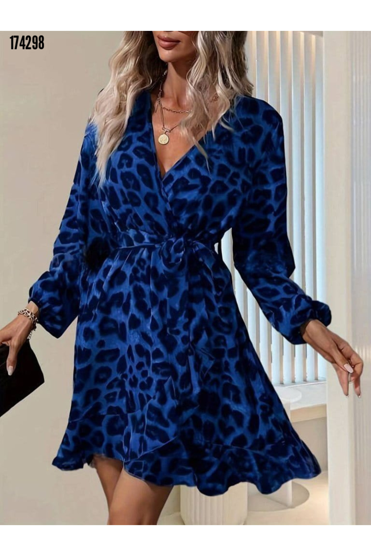 Yeni Sezon Kadın Uzun Kollu Kruvaze Yaka Leopar Mini Elbise Kuşaklı Modal Kumaş Yeni Sezon Kadın Uzun Kollu Kruvaze Yaka Leopar Mini Elbise Kuşaklı Modal Kumaş J-174298-MN 2XL-3XL
