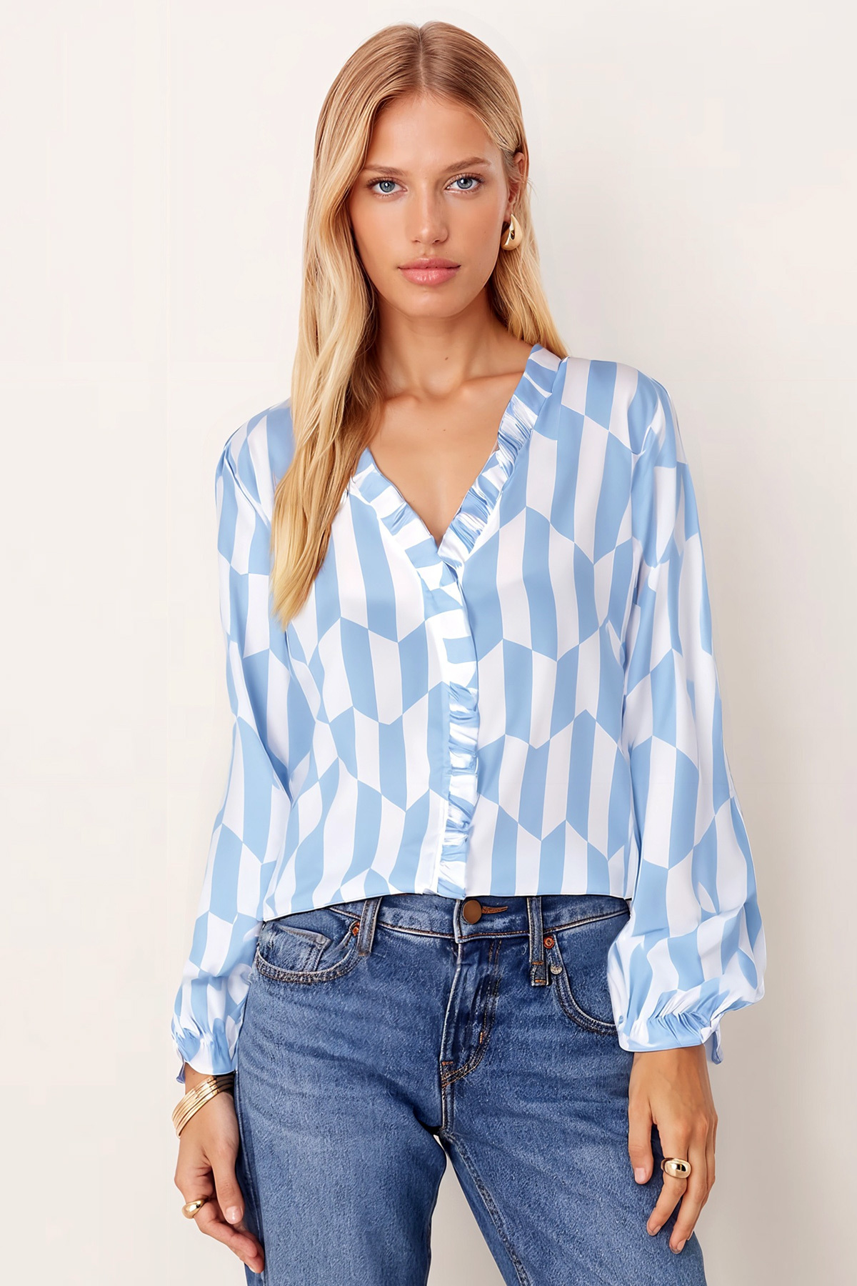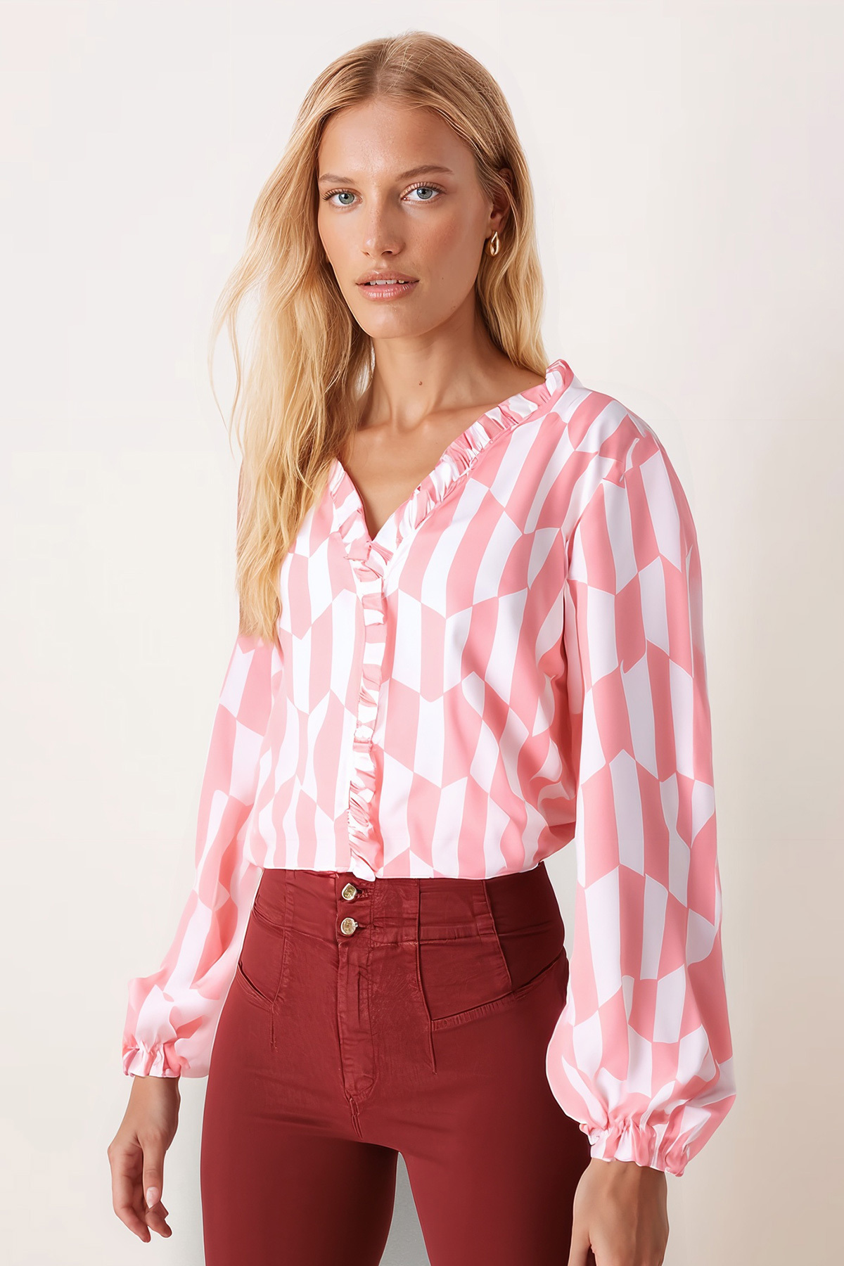 Kadın Yeşil Yakası Ve Önü Fırfırlı Kolları Lastikli Uzun Kollu Bluz ARM-25Y001015 Kadın Yeşil Yakası Ve Önü Fırfırlı Kolları Lastikli Uzun Kollu Bluz ARM-25Y001015 XL
