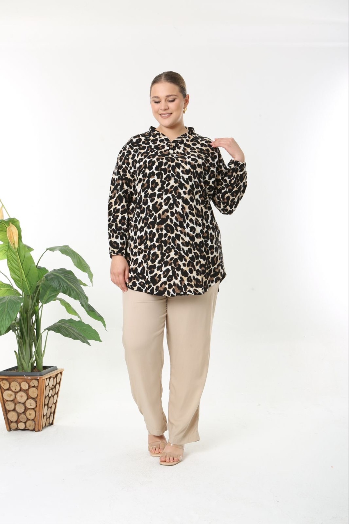 Tunık Dokuma Viskon pamuklu kumaş rahat kesim tunik Tunık Dokuma Viskon pamuklu kumaş rahat kesim tunik 25172 4XL