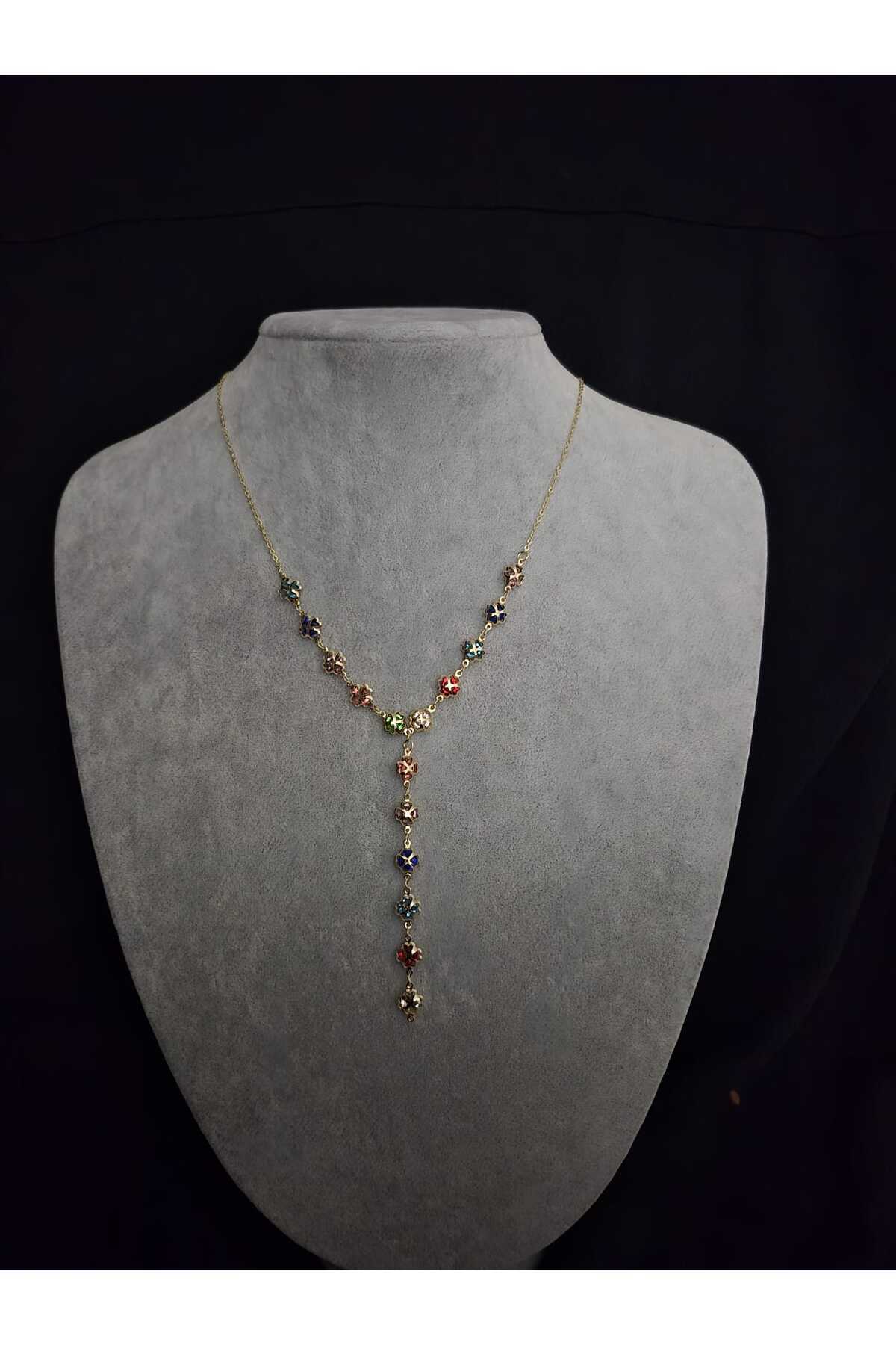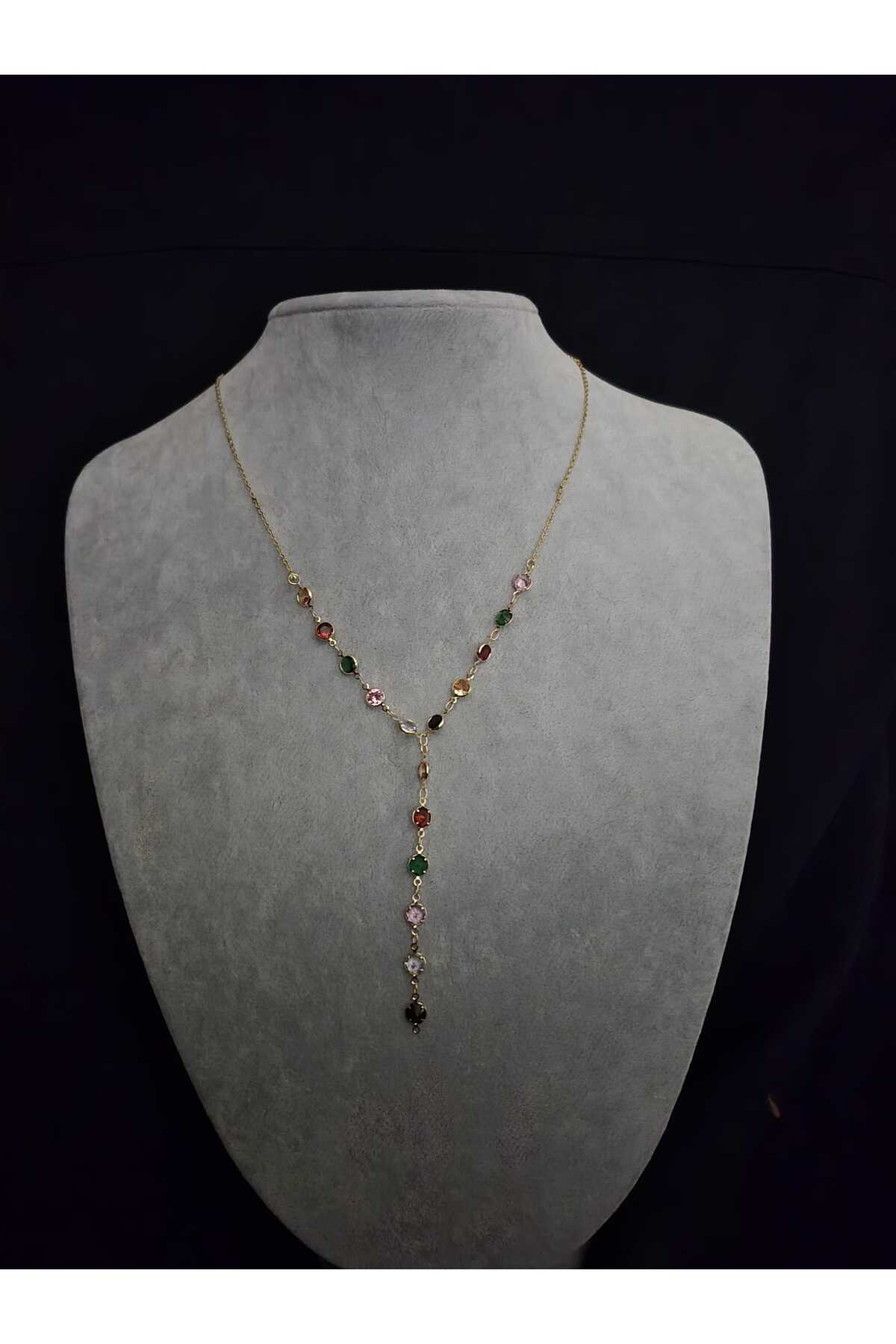 Renkli Taşlı Y Model Kadın Çelik Kolye - Altın Renk, Paslanmaz Renkli Taşlı Y Model Kadın Çelik Kolye - Altın Renk, Paslanmaz reveriekly30 45 cm