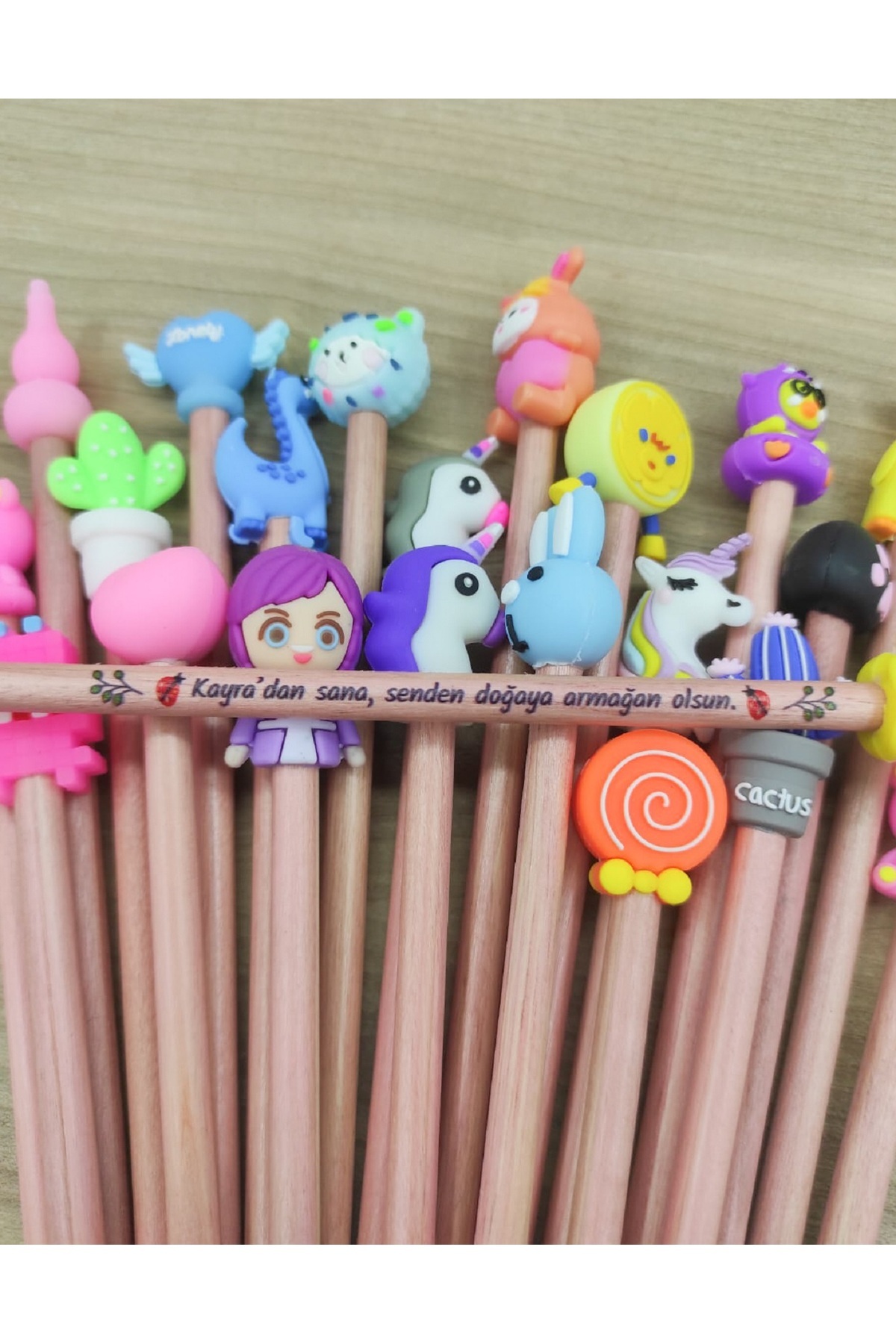 Kişiye Özel Öğrenci, Doğum Günü, Okuma Bayramı Hediyesi Renkli ve Sevimli Figürlü 20 Kalem